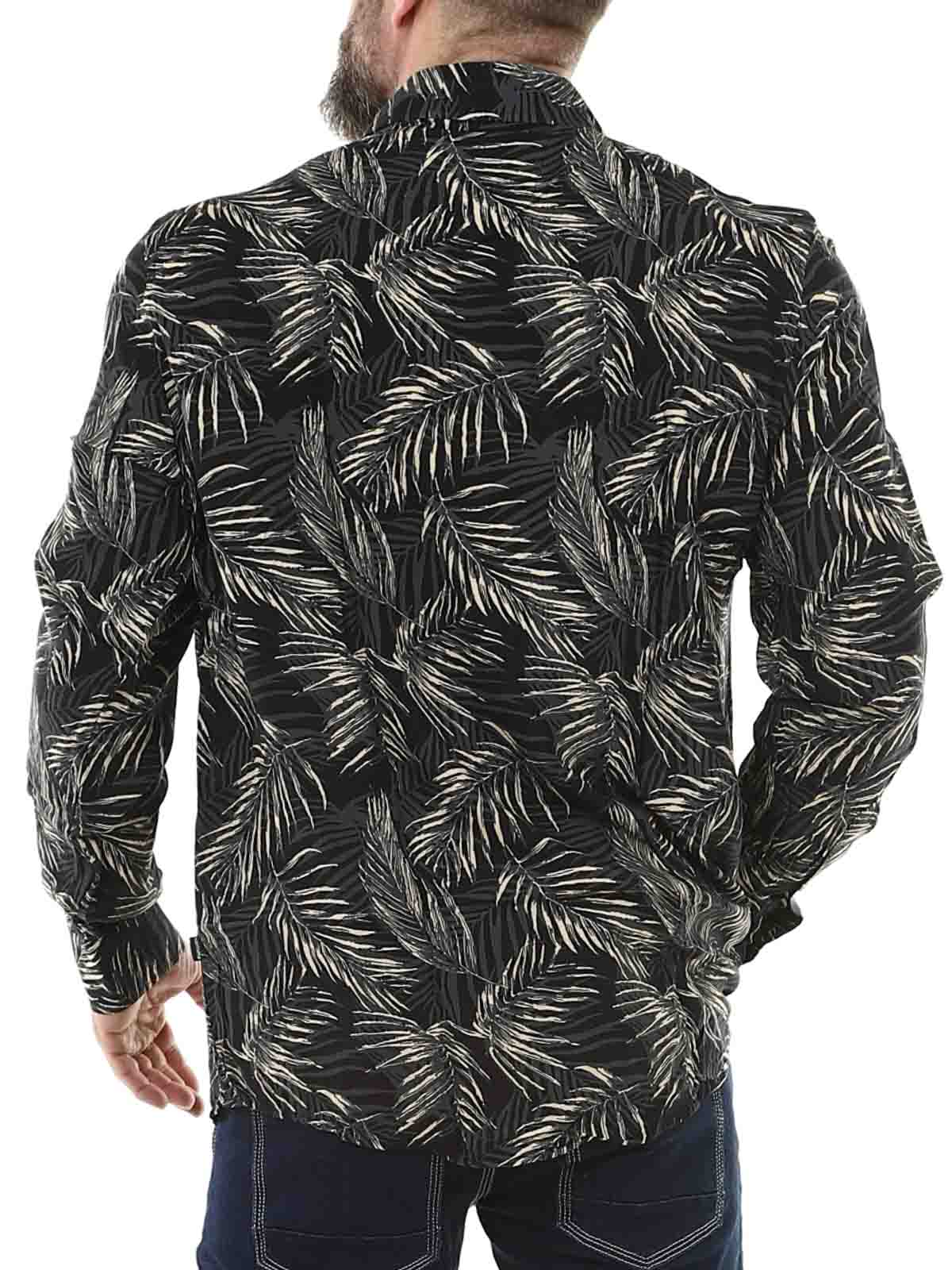 Long-sleeved shirt with a leaf pattern. It features buttons at the front, a collar, and adjustable cuffs. Made from a light and airy fabric that makes the shirt comfortable to wear all day, regardless of the season.