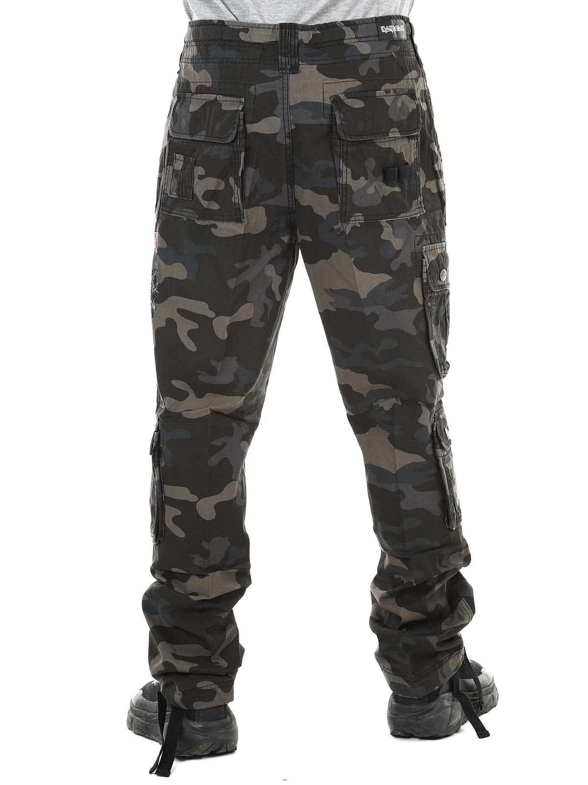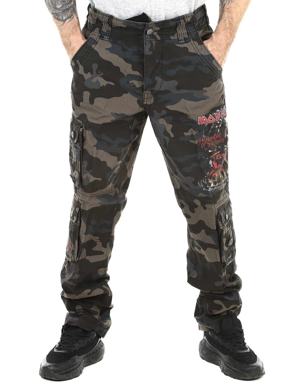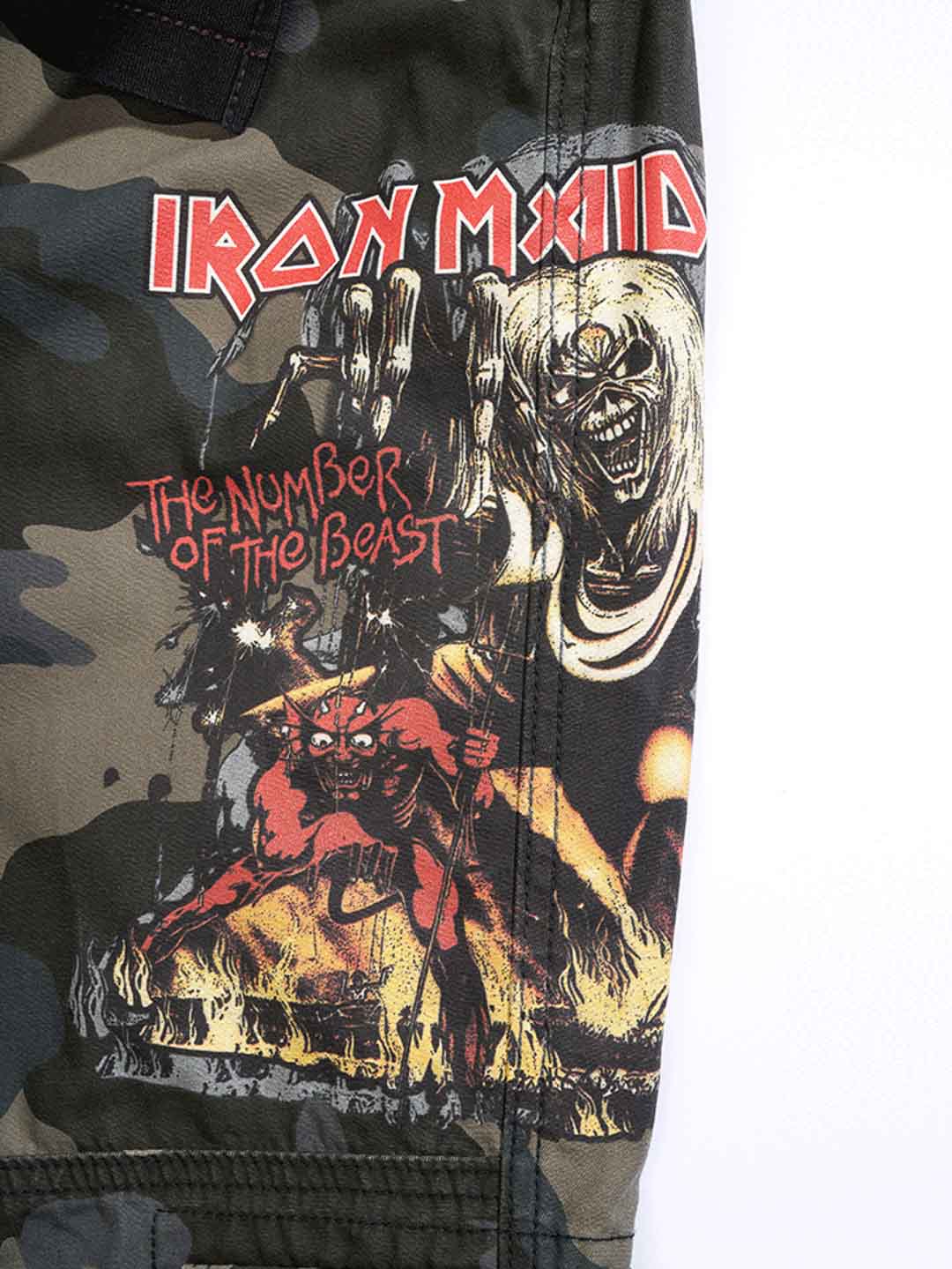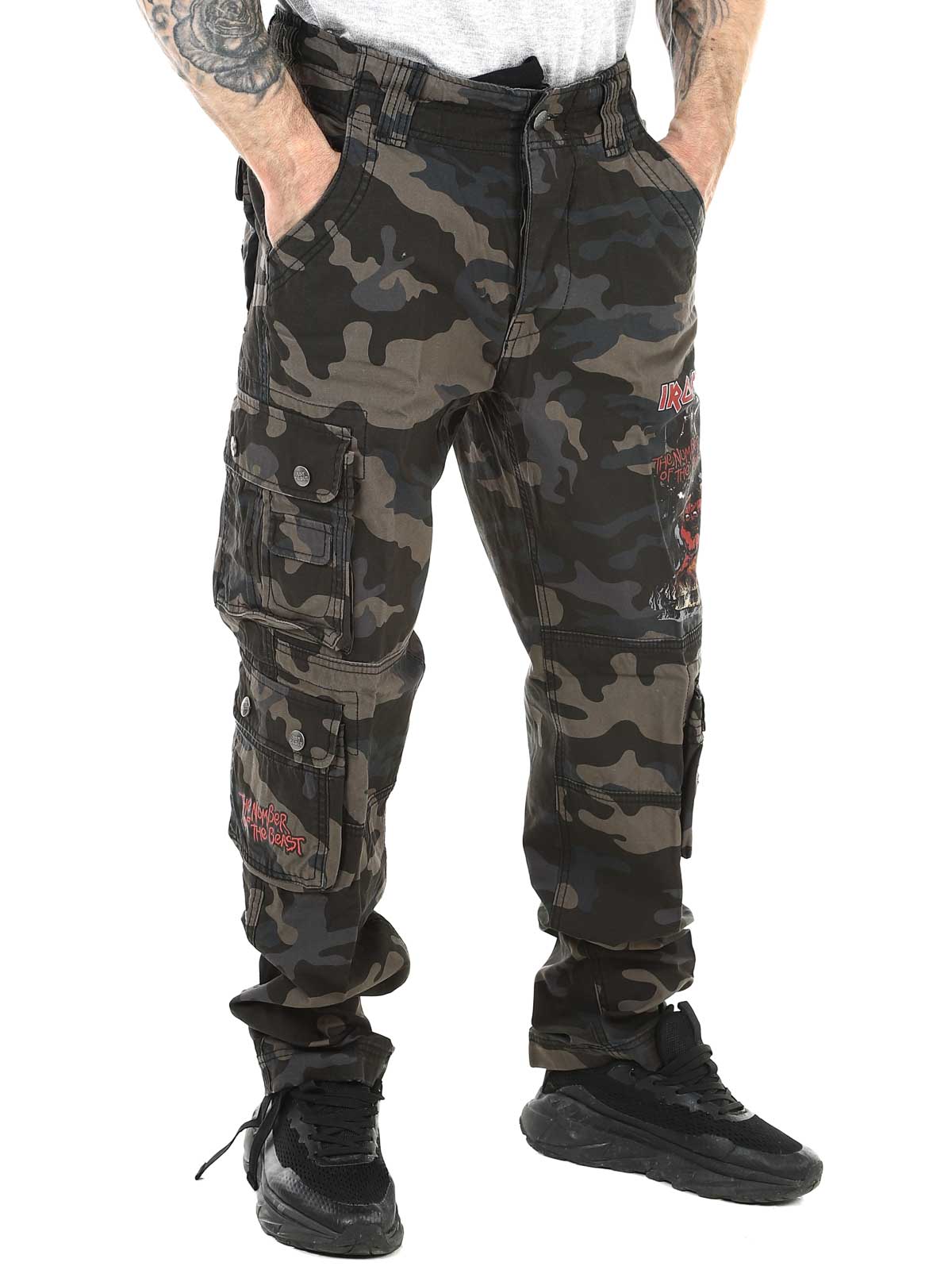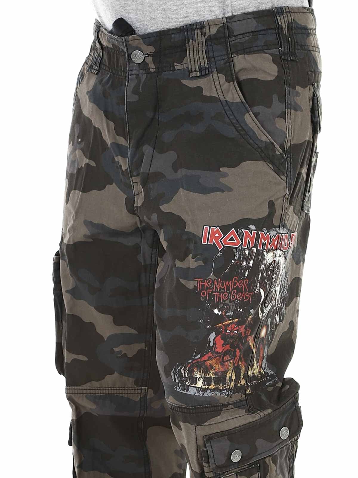 Dark slim-fit trousers made from durable, skin-friendly cotton that provides both comfort and strength. Adjustable fabric straps at the waist and cuffs make it easy to customize the fit. Designed with a large Iron Maiden print along the left leg and a “Number of the Beast” print on the right leg pocket — a clear tribute to the iconic heavy metal band Iron Maiden.