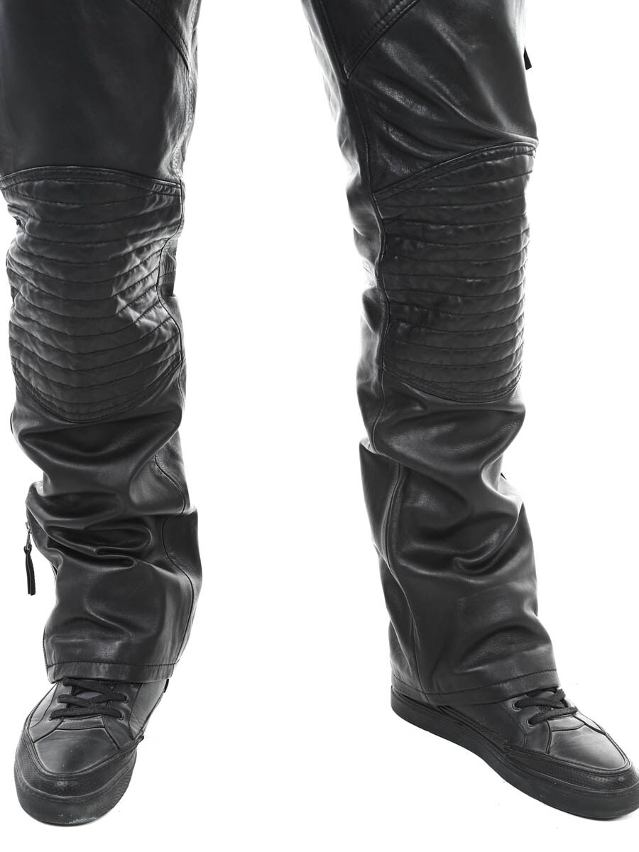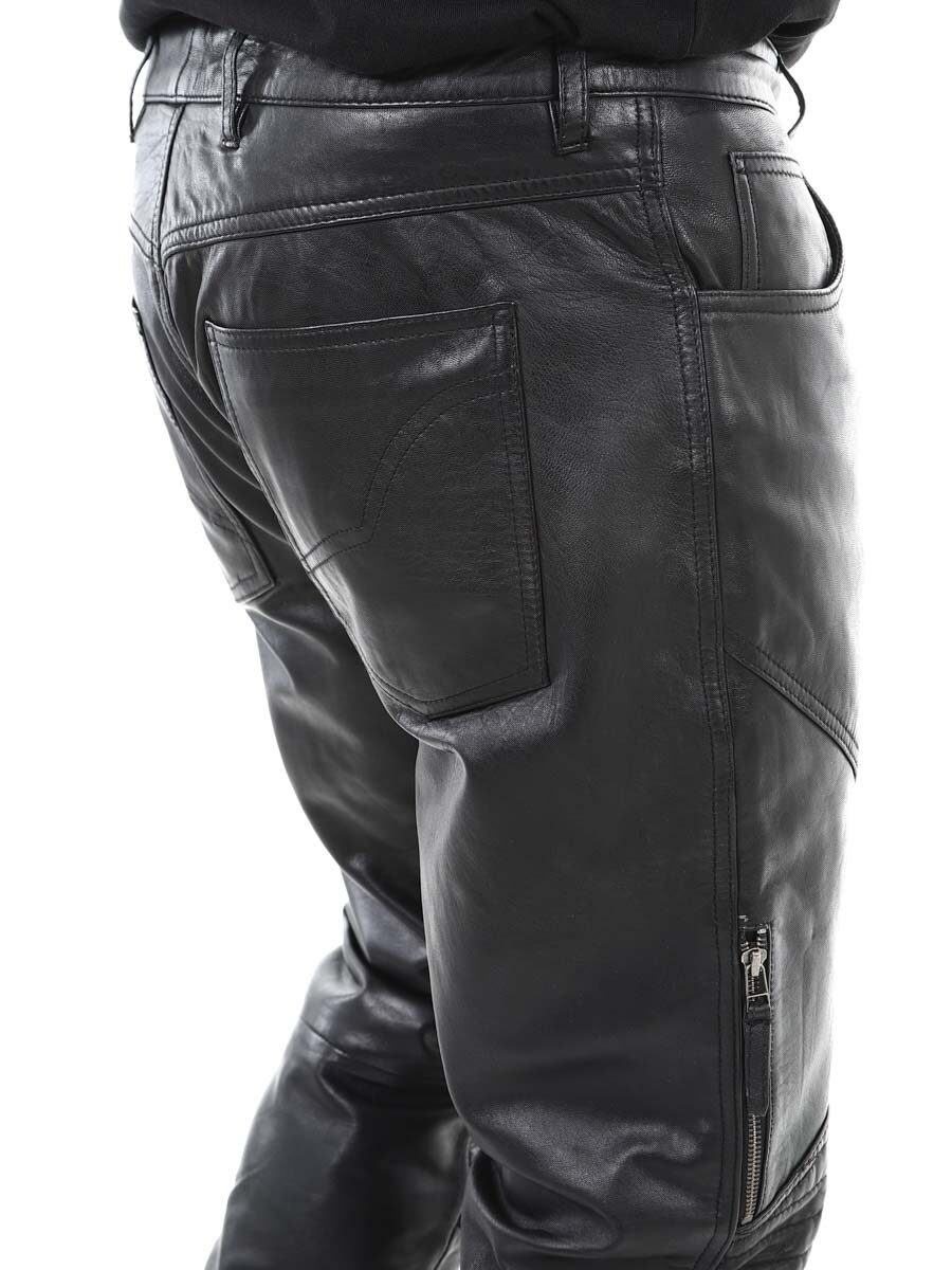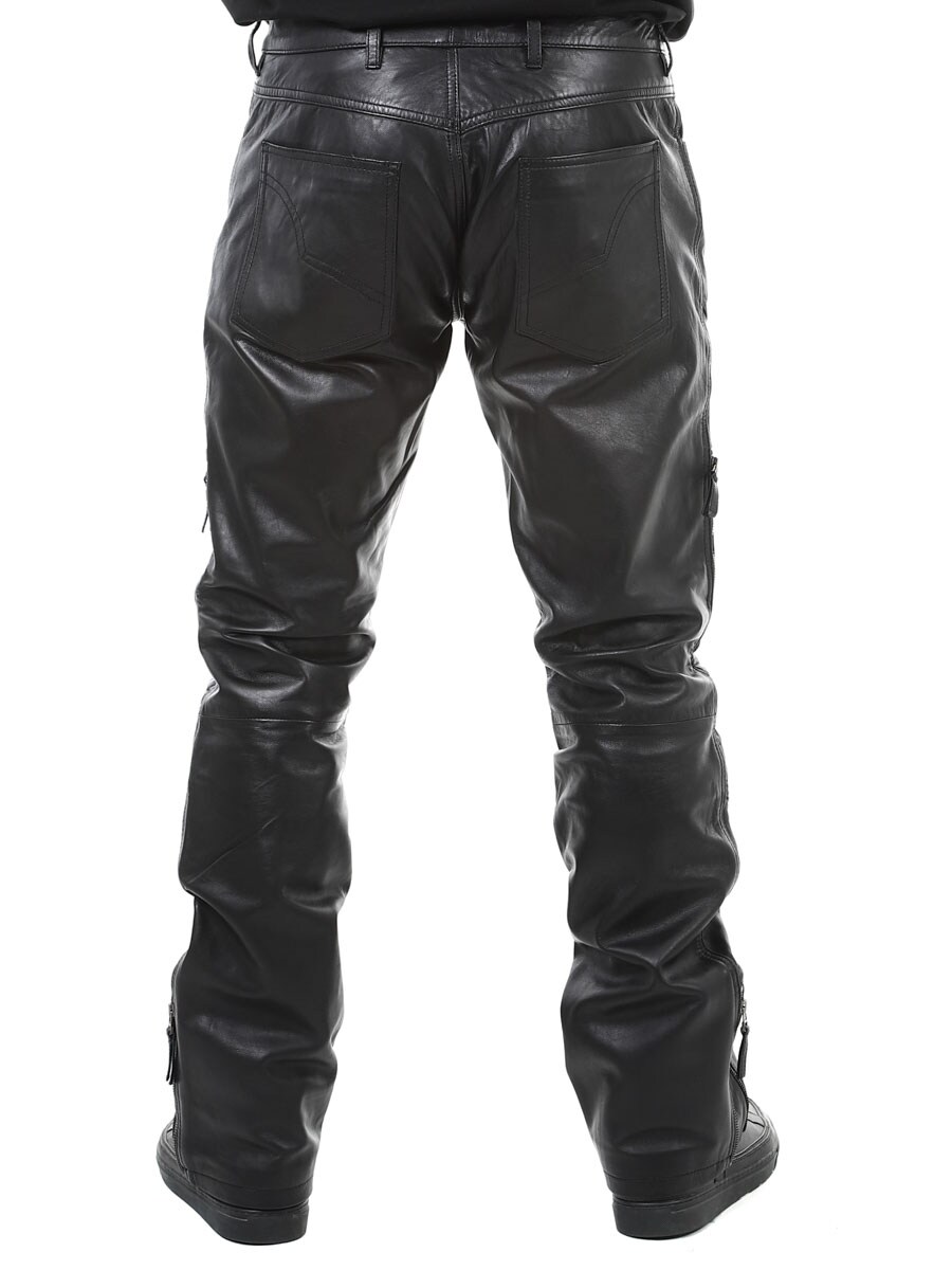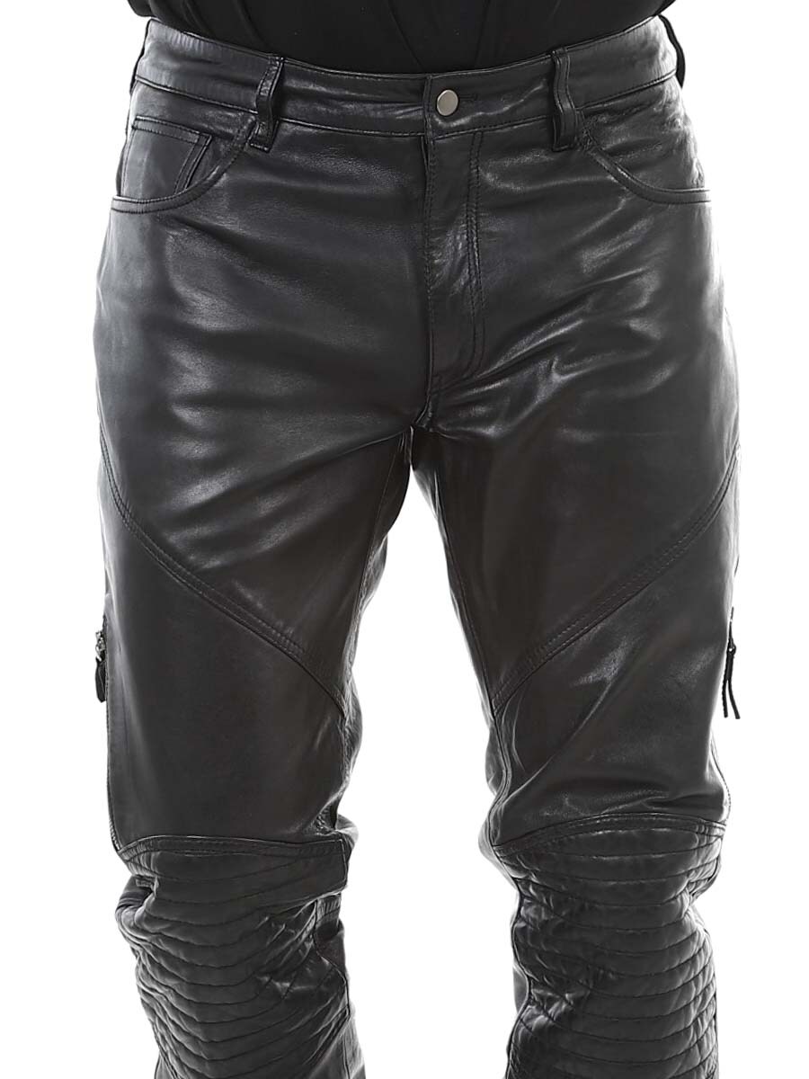 Stylish trousers made from genuine sheep leather, which gives them a soft and supple feel while maintaining a durable and long-lasting quality. They feature five classic pockets and zips at the hems for a customisable fit. Zip detailing and padded knees. Designed for biking enthusiasts and those looking for an edgy look!