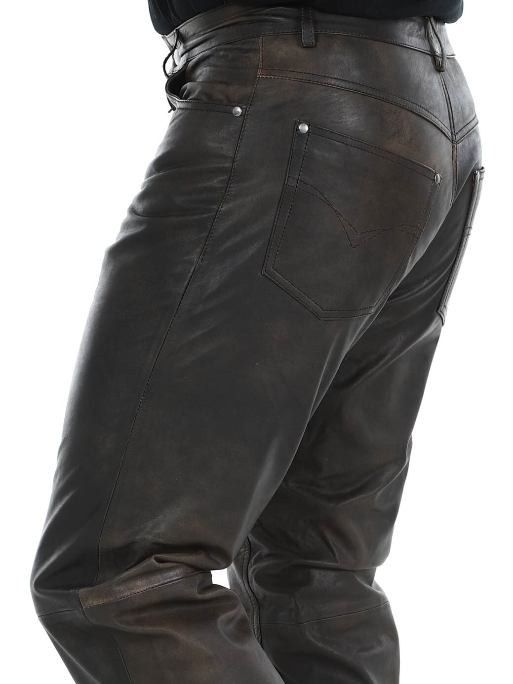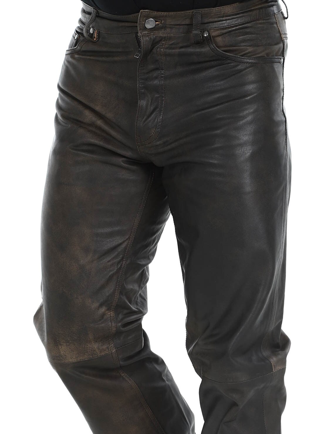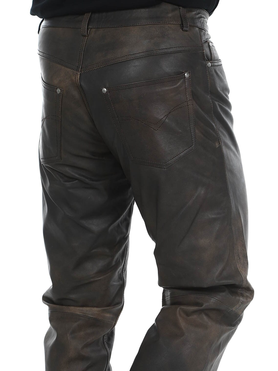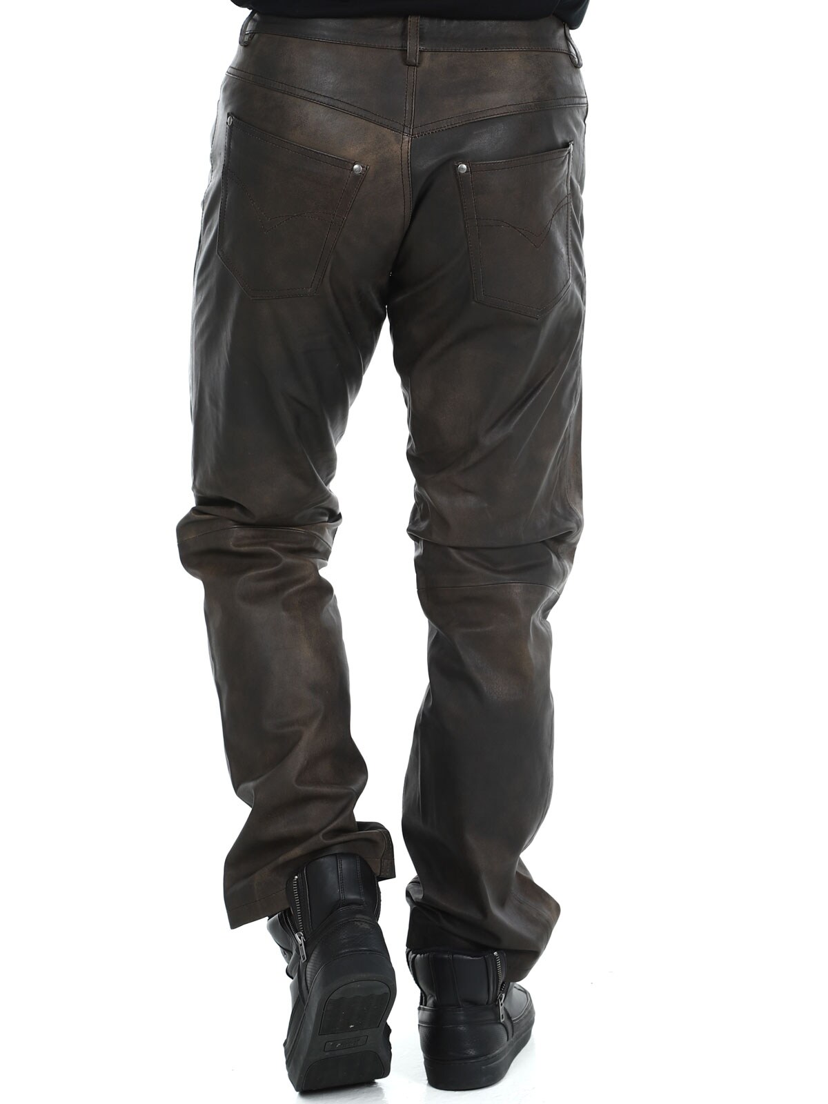 Brown trousers in genuine leather with classic 5-pocket design. Made from soft leather with a polyester lining for a comfortable fit. If you want a comfortable pair of pants with attitude, you've come to the right place!