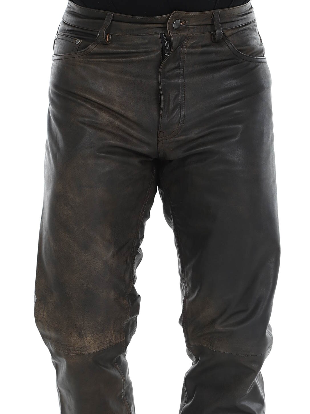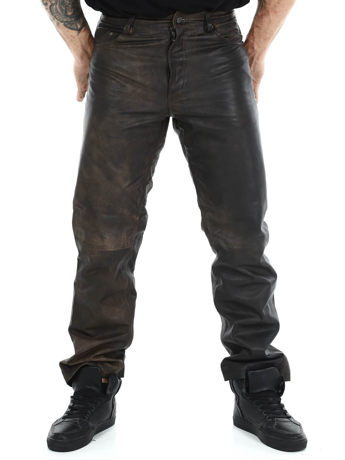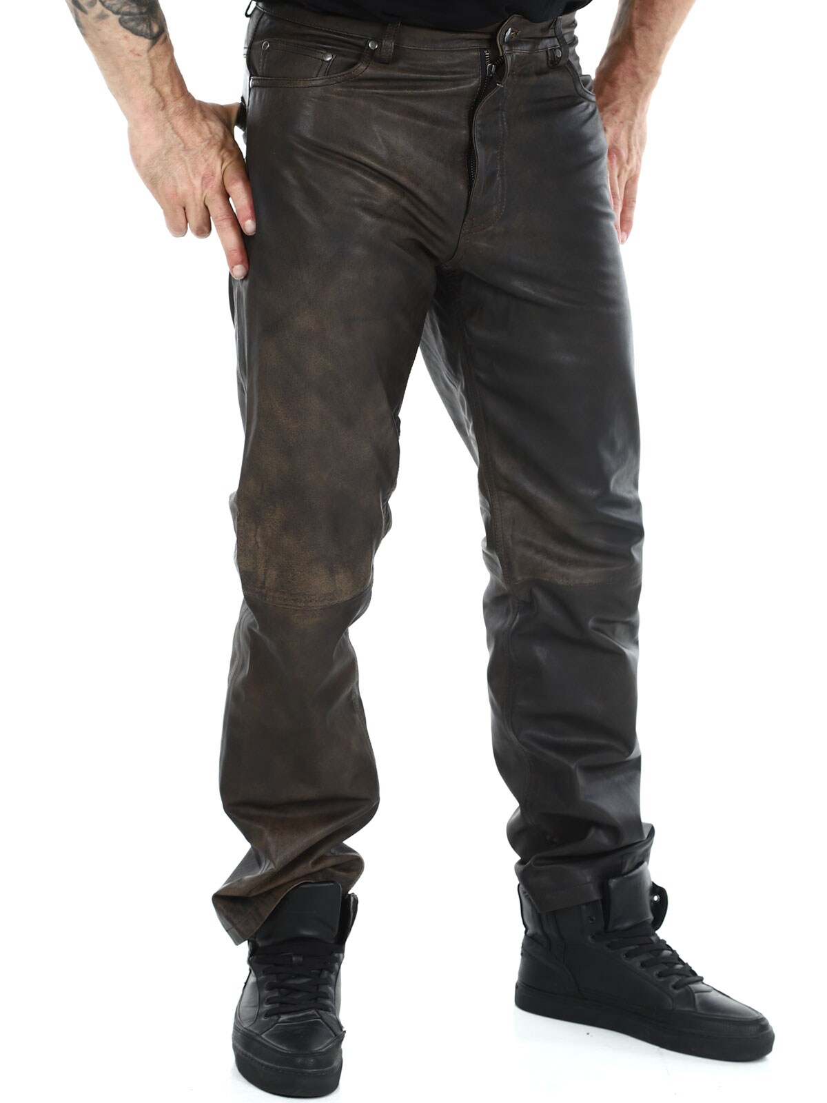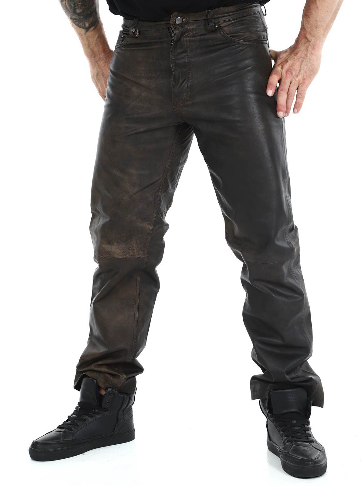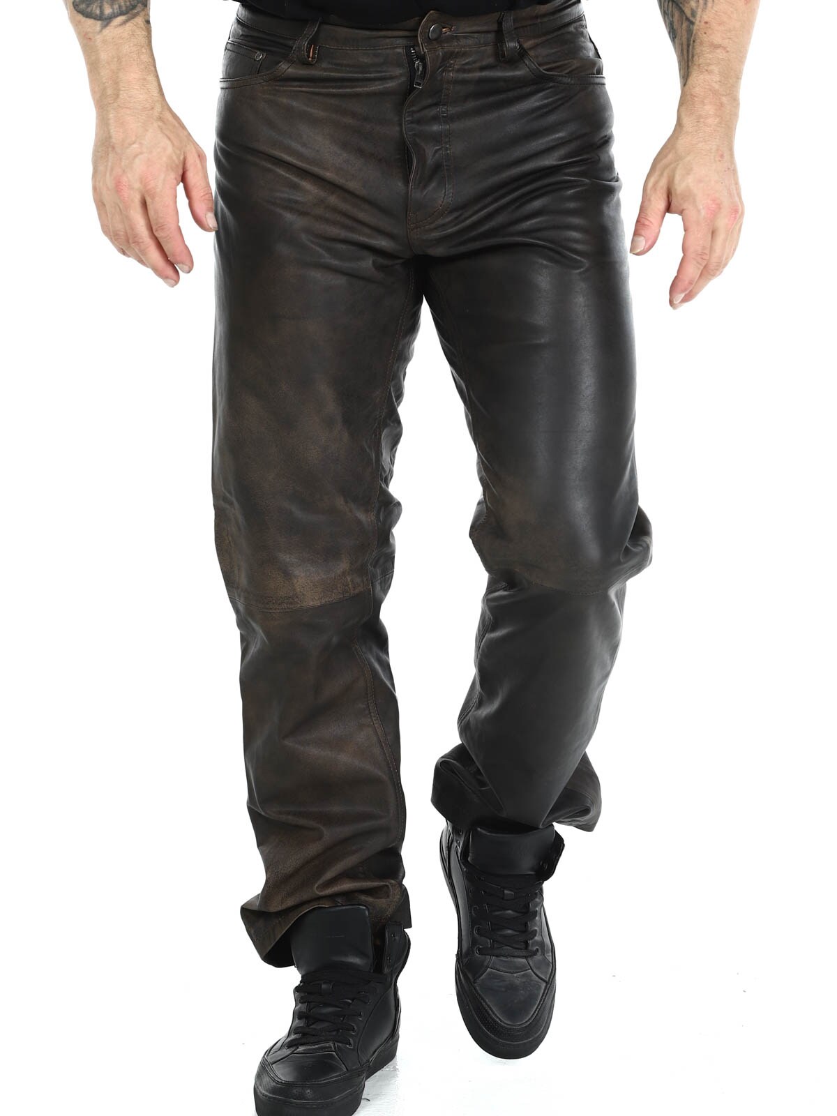 Brown trousers in genuine leather with classic 5-pocket design. Made from soft leather with a polyester lining for a comfortable fit. If you want a comfortable pair of pants with attitude, you've come to the right place!