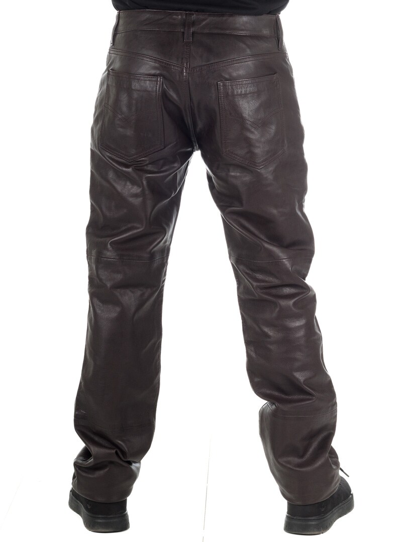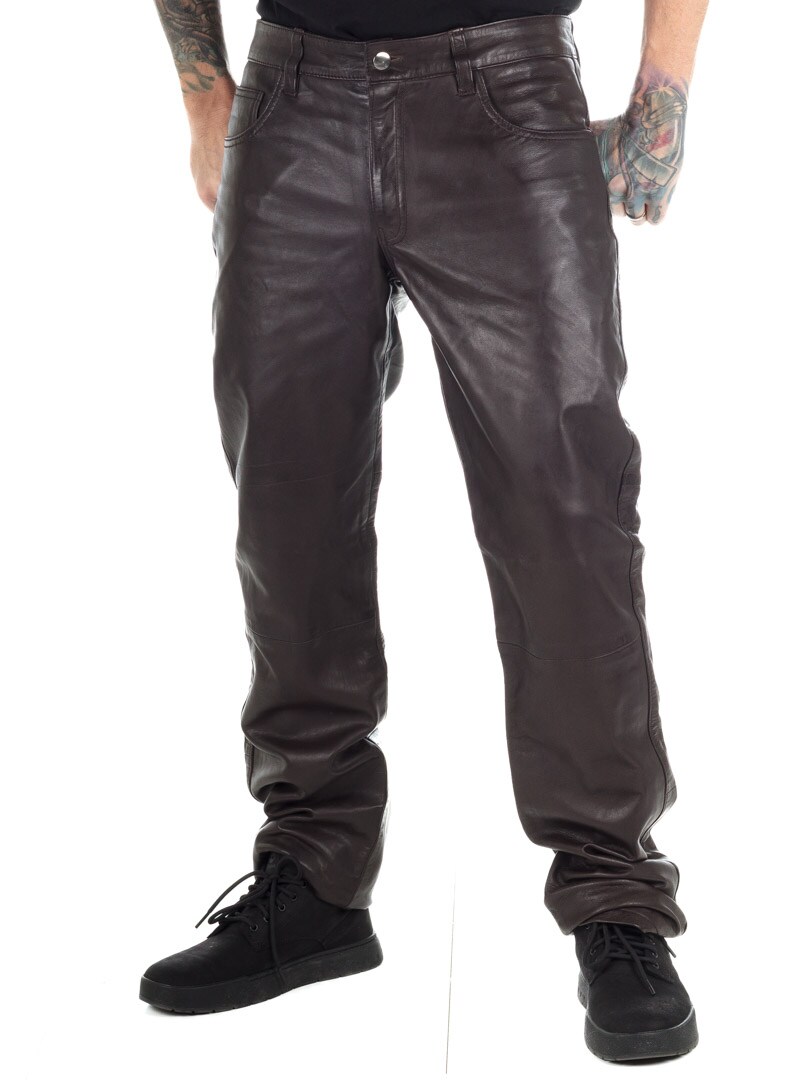 Brown genuine leather trousers with classic 5-pocket design. Made from soft leather with a polyester lining for a comfortable fit. If you want a comfortable pair of pants with attitude, you've come to the right place!