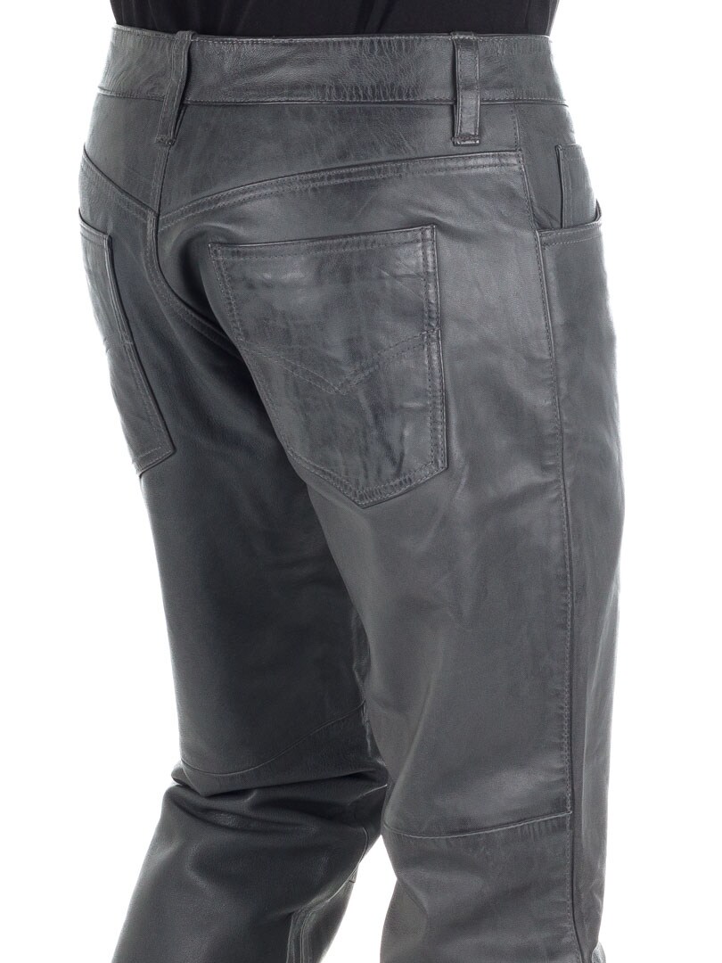 Grey genuine leather trousers with classic 5-pocket design. Made from soft leather with a polyester lining for a comfortable fit. If you want a comfortable pair of pants with attitude, you've come to the right place!