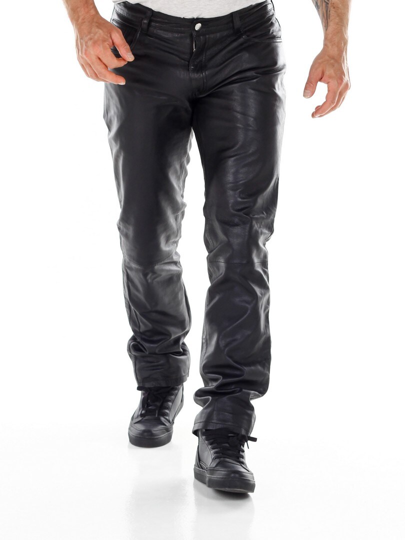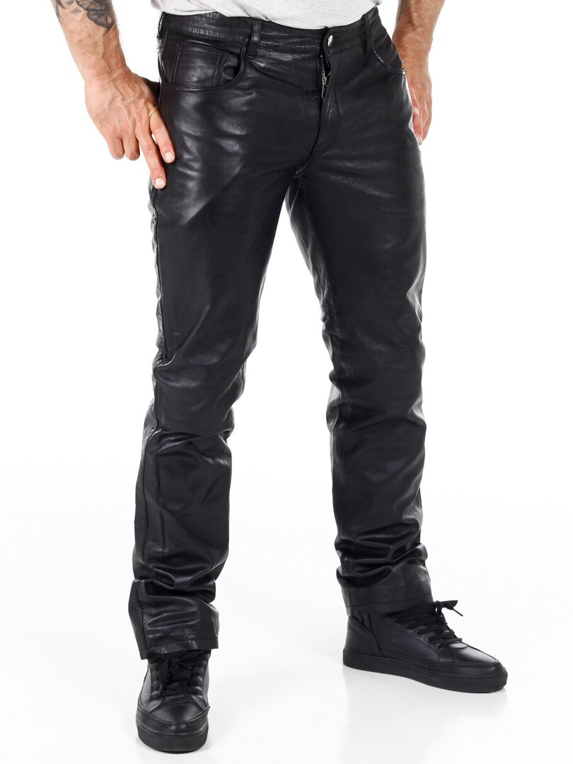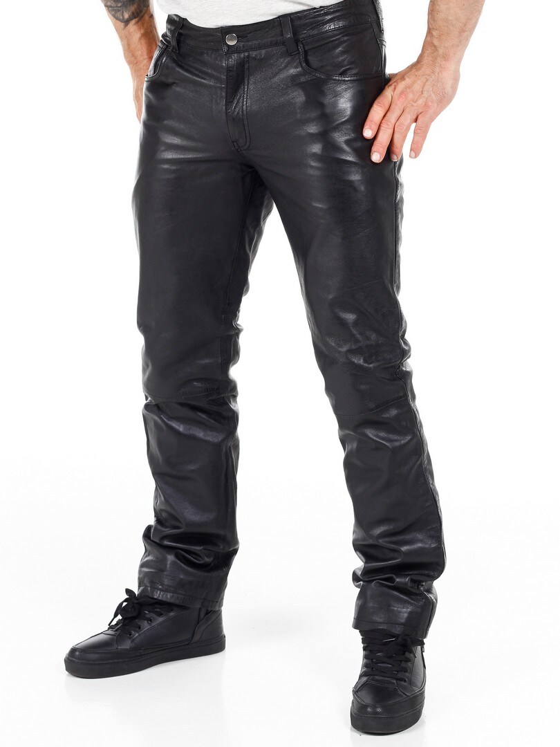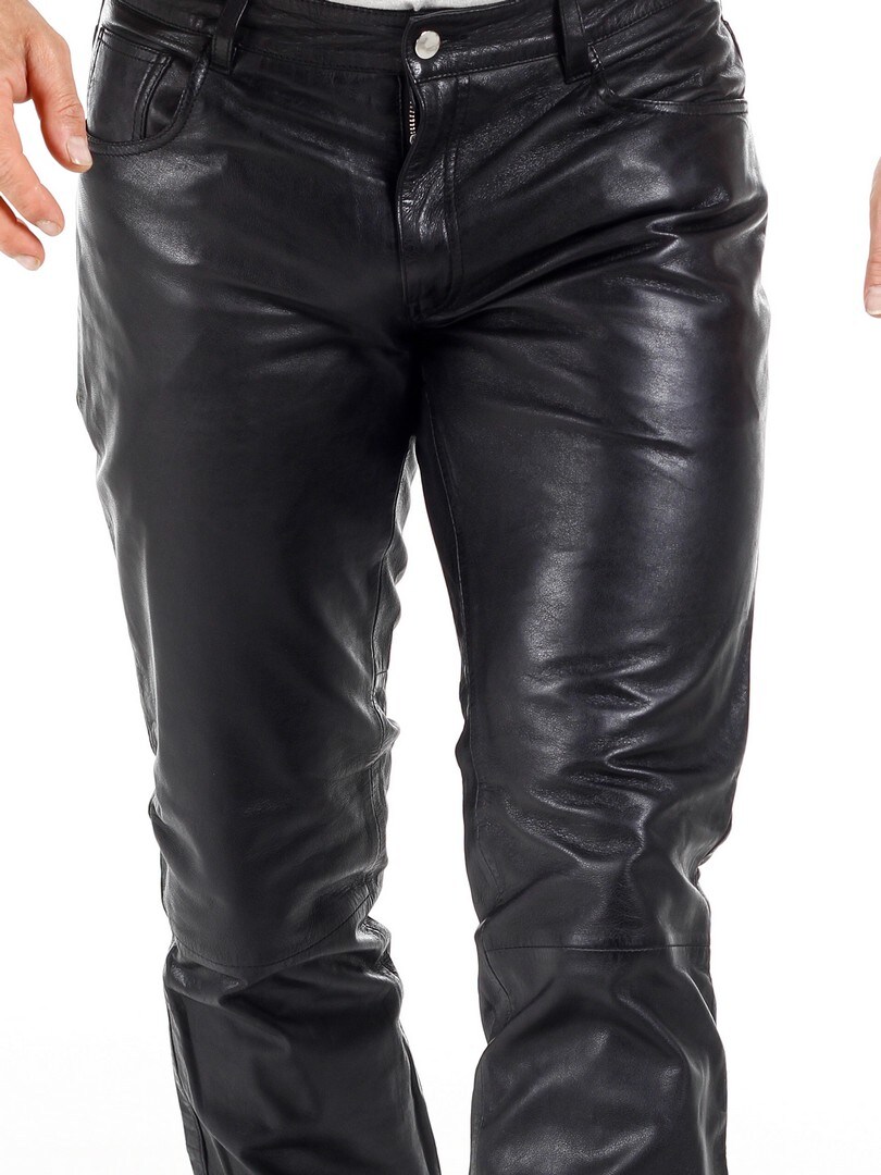 Black genuine leather trousers with classic 5-pocket design. Made from soft leather with a polyester lining for a comfortable fit. If you want a comfortable pair of pants with attitude, you've come to the right place!
