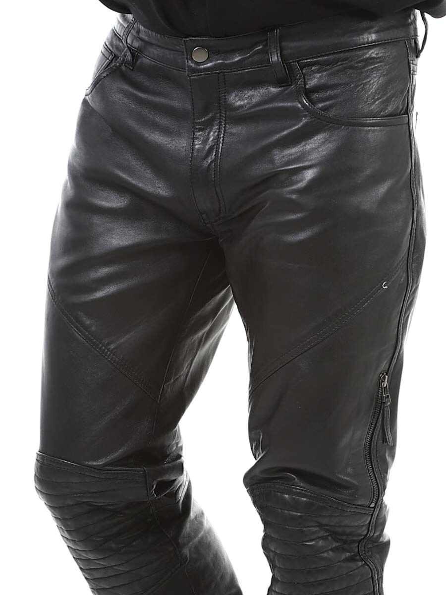 Rugged Leather Pants for Men – A Timeless Classic. Leather pants are a staple of rock-inspired men's fashion. With their bold design and durable materials, they create a masculine and confident look. Perfect for everyday wear and concerts, whether paired with a biker jacket or a simple t-shirt. Our leather pants are crafted from premium leather for comfort and longevity. Find your perfect pair at RockDenim!