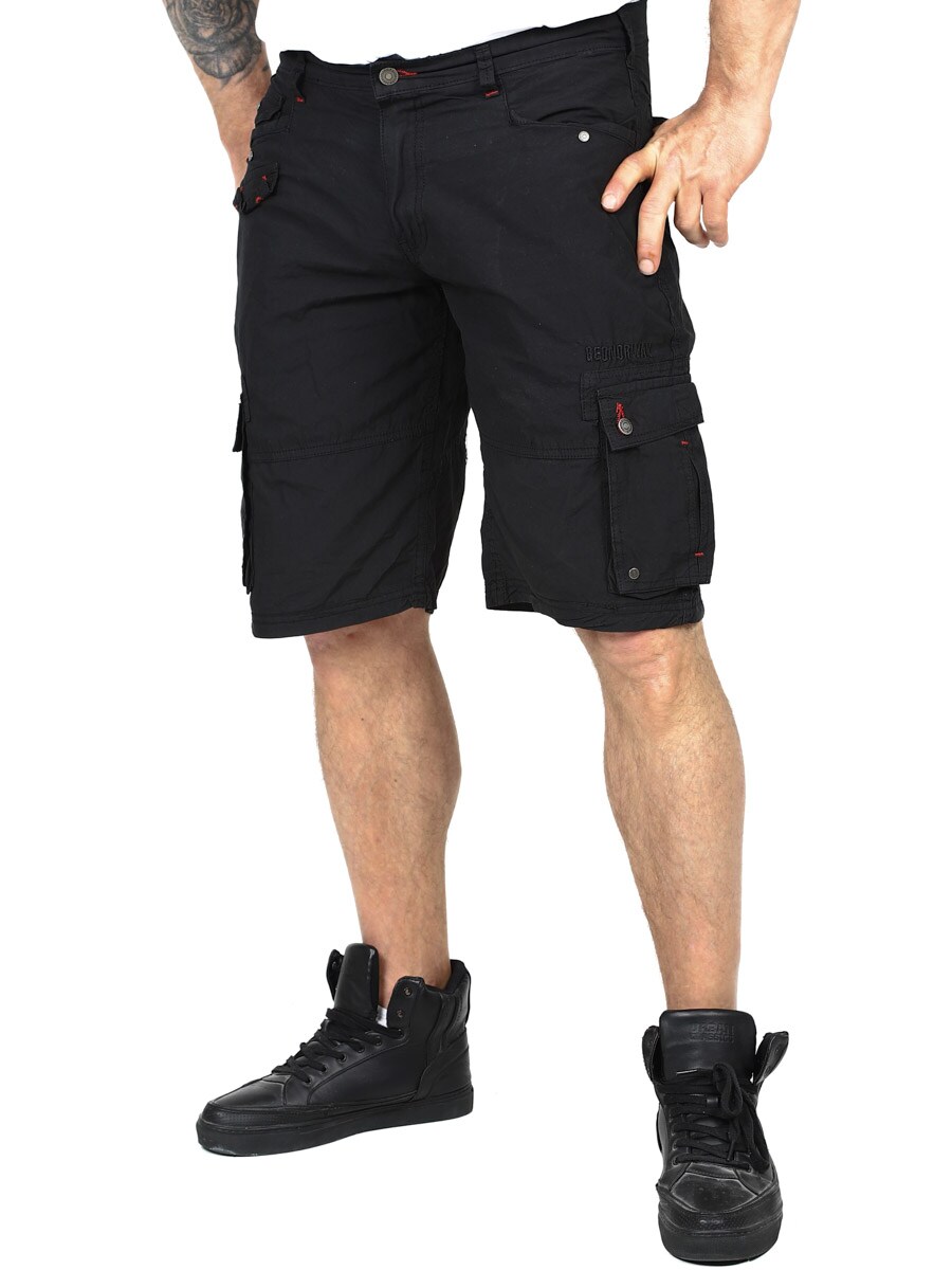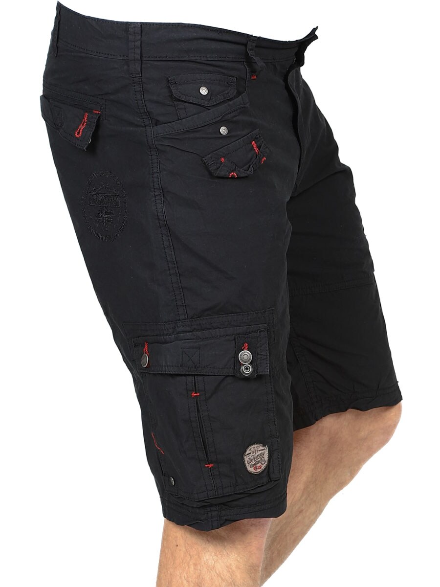 Airy and comfortable shorts with adjustable fabric waistband. They have several pockets both front and back, as well as tailored print and patches. Made of 100% cotton.