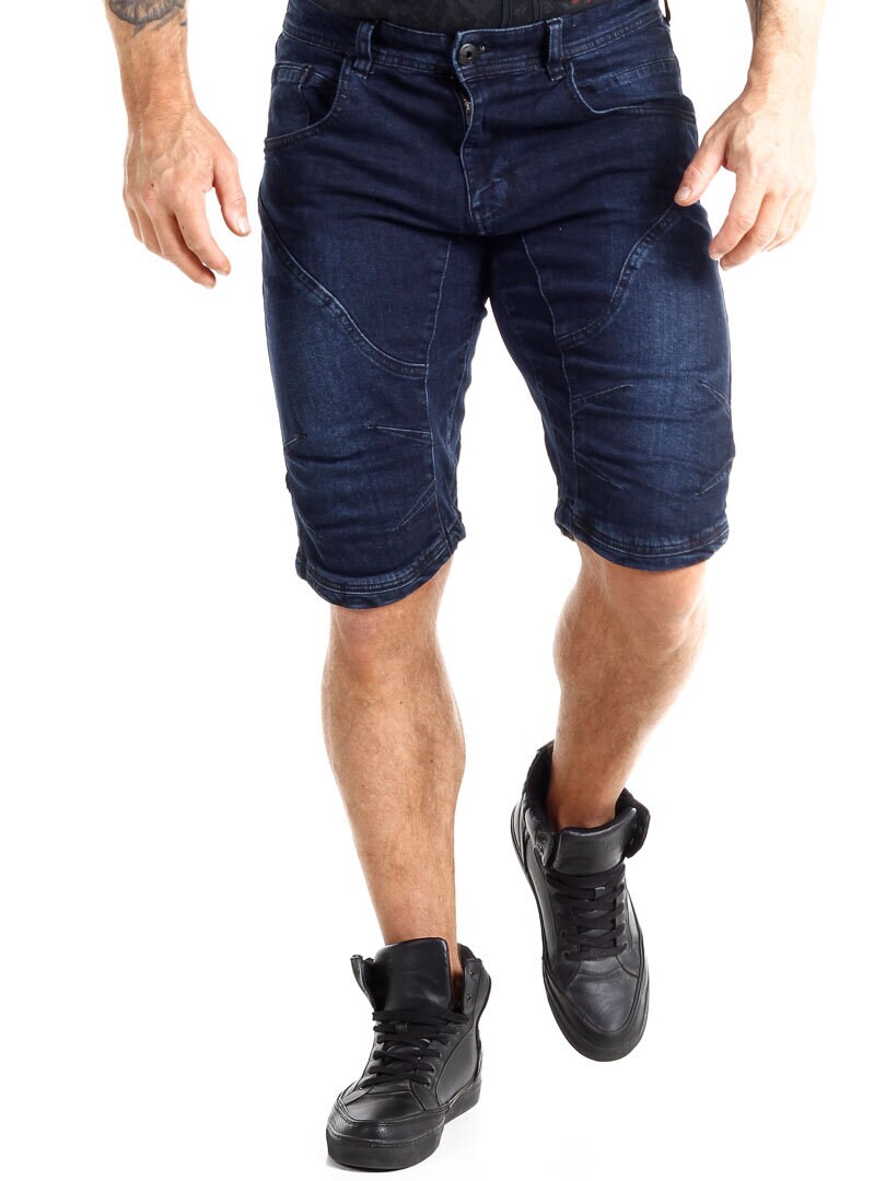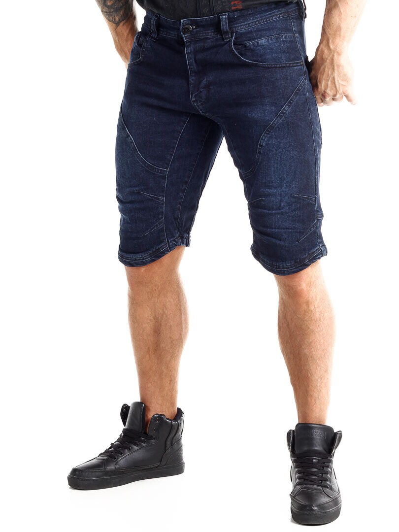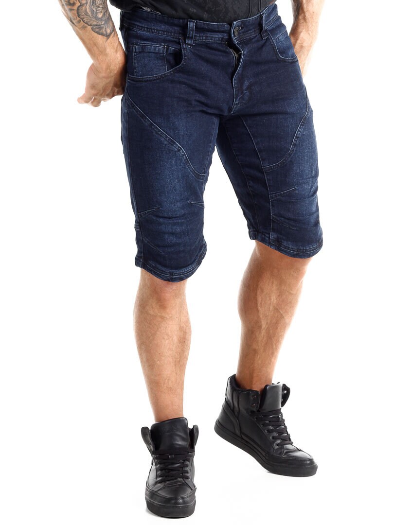 Denim shorts with stitching by Indicode