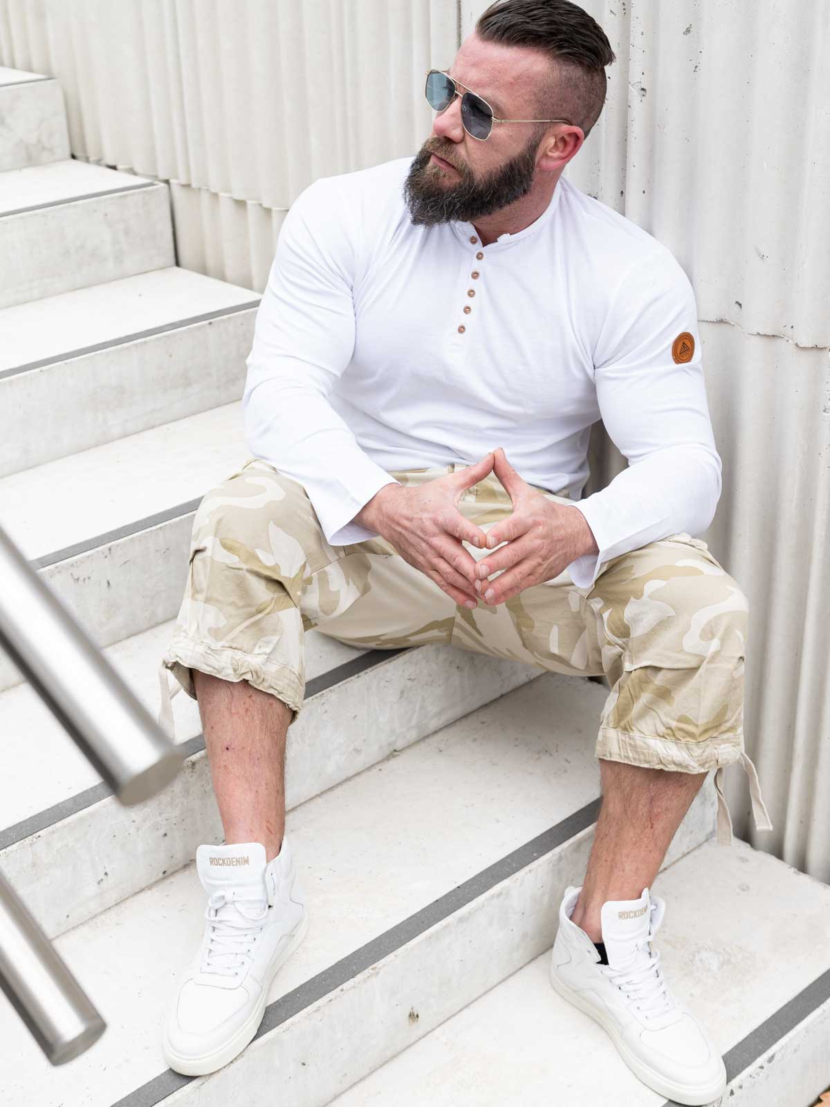 3/4 pants with baggy fit. Two front pockets and two back pockets with press stud, and two large side pockets. Laces in the leg ends that can adjust the width.