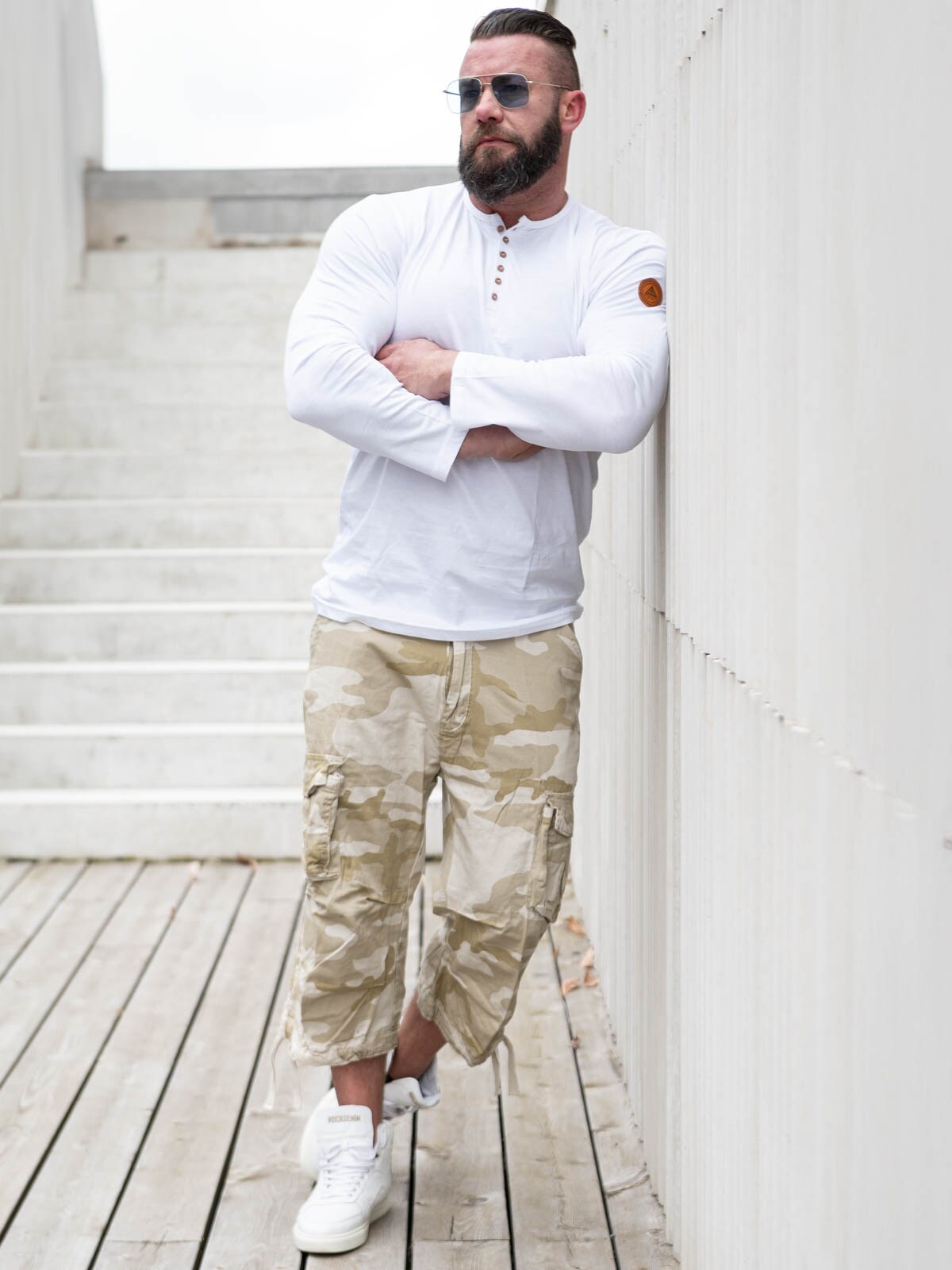 3/4 pants with baggy fit. Two front pockets and two back pockets with press stud, and two large side pockets. Laces in the leg ends that can adjust the width.