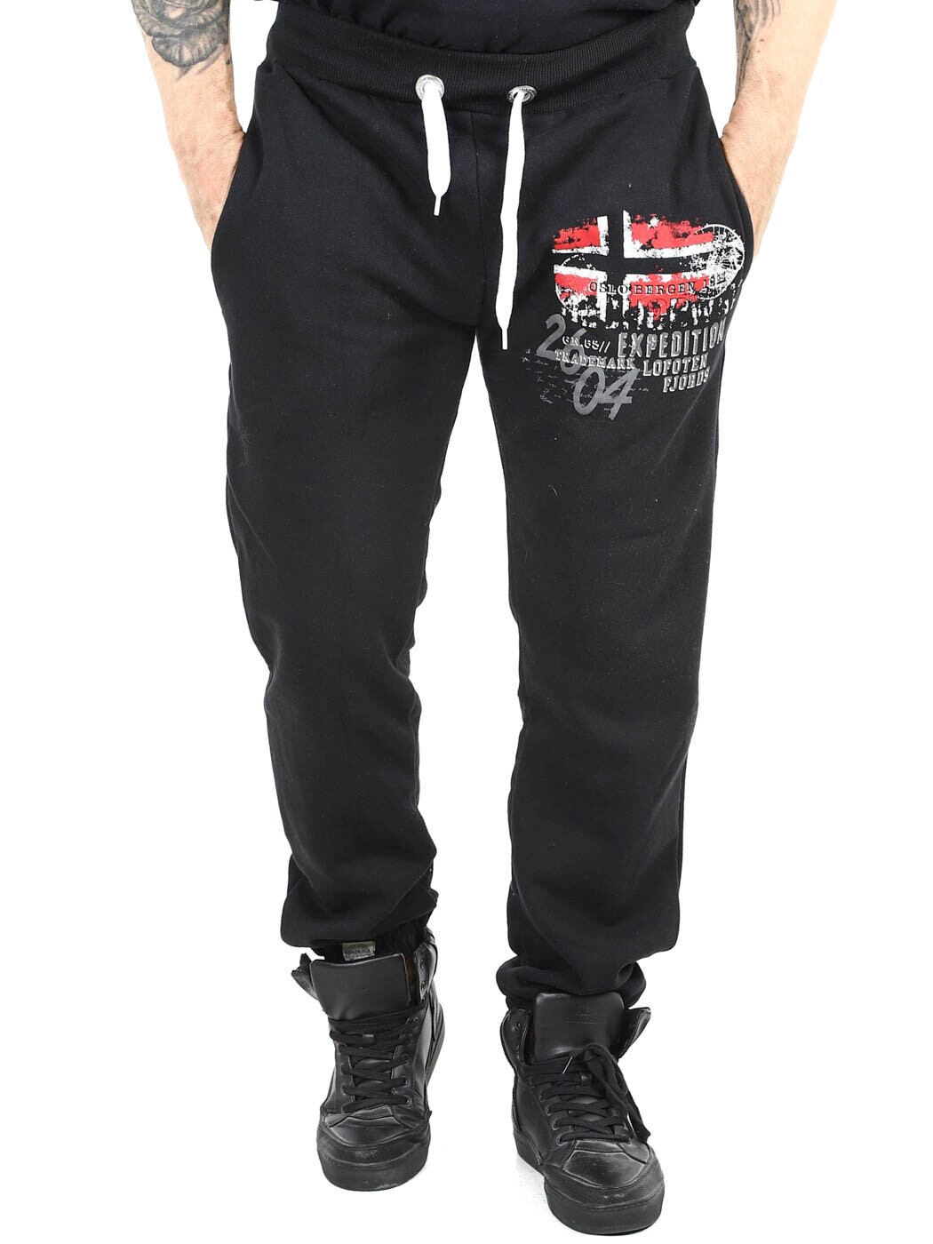 Comfortable sweatpants with a brushed interior that is extra soft. They feature prints on the leg and two open front pockets. Designed with elastic cuffs at the ankles and ribbed cuffs with a drawstring at the waist.