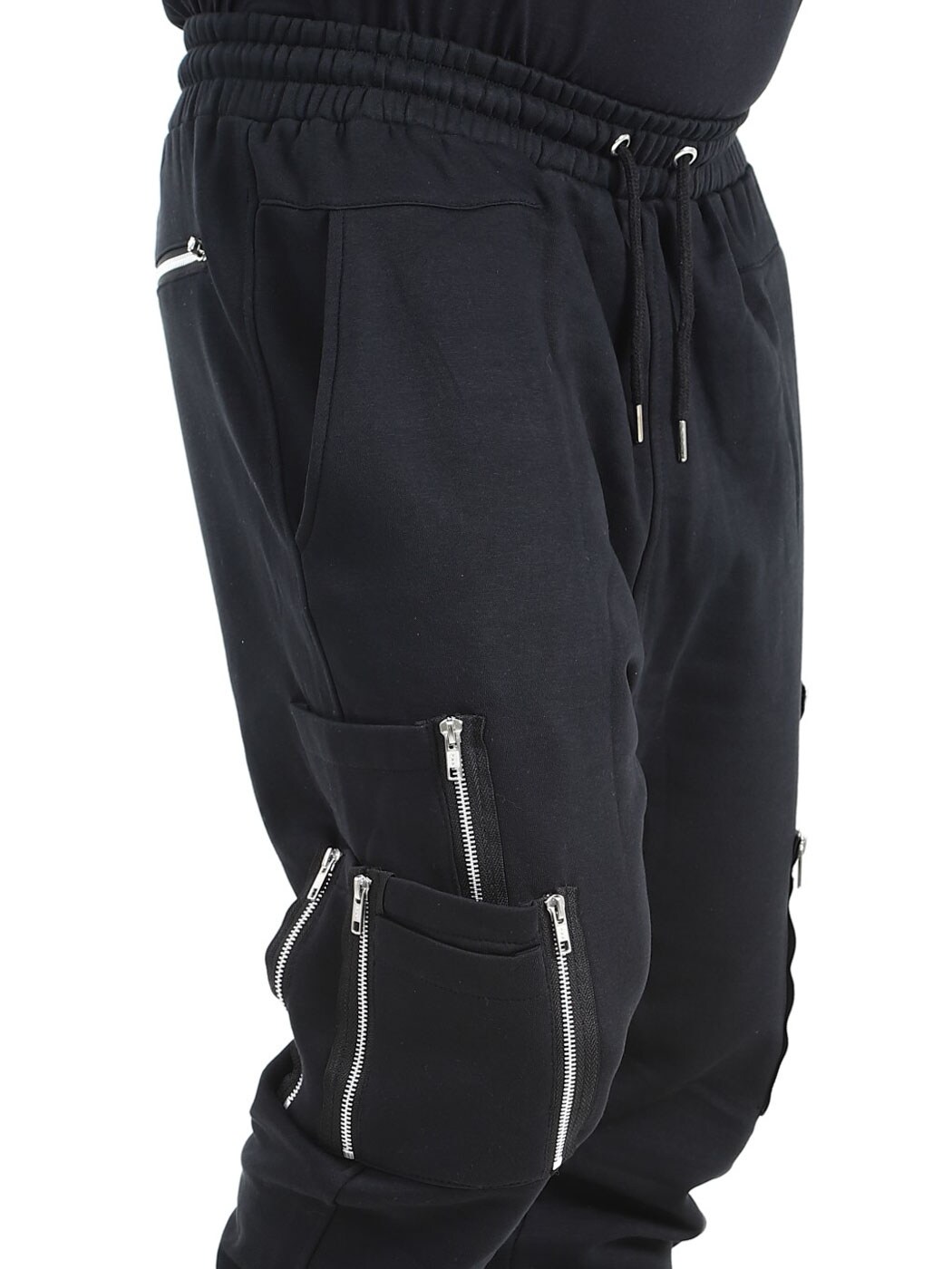 Soft pants with elastic cuffs at the ankles and waist. They feature two open front pockets, two closable back pockets, and multiple open leg pockets with zippers for an edgy look. Style and function in one pair – only at Rockdenim!