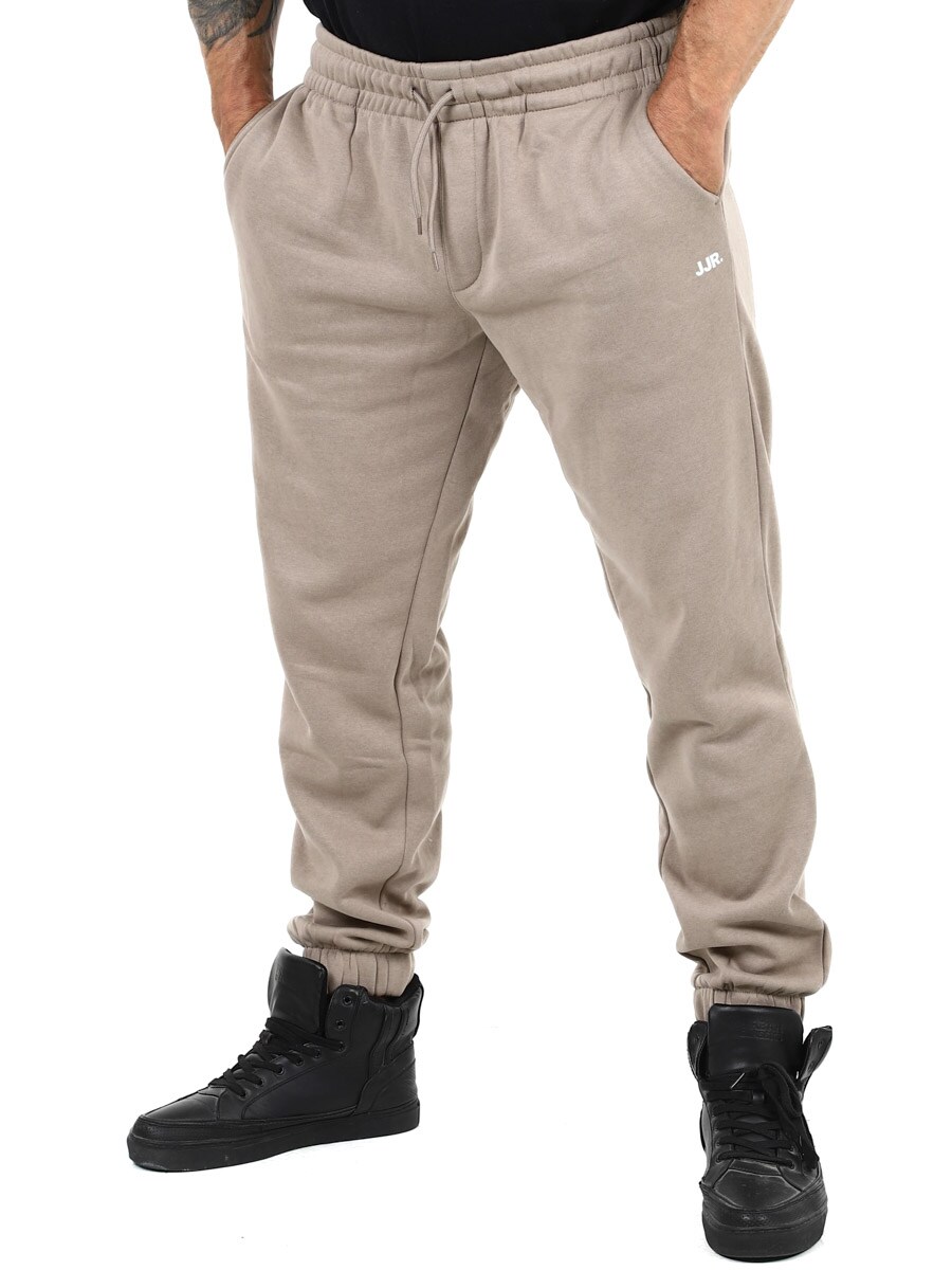 Comfortable and relaxed sweatpants, perfect for everyday activities. Designed with an adjustable drawstring waist and cuffs at the leg ends. They have side pockets for added convenience and the subtle JJR logo adds a stylish touch.