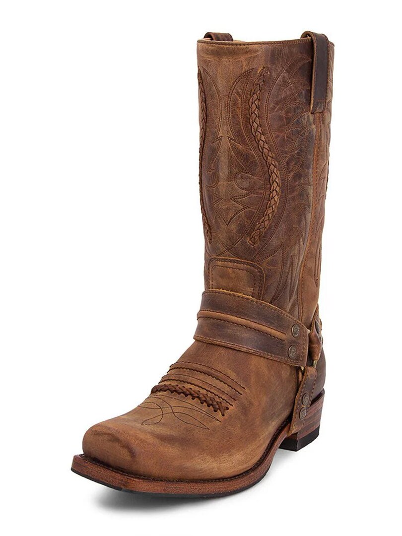 Robust boots made from oiled brown leather with a beautifully aged appearance. Designed with embroidery that gives them a classic western character. With a square toe, semi-Cuban heel, and a durable leather sole with rubber reinforcement, the boots offer both comfort and stability. Crafted using traditional Goodyear-welt construction – a mark of quality ensuring long-lasting durability and shape retention. For those who appreciate genuine craftsmanship and timeless western style!