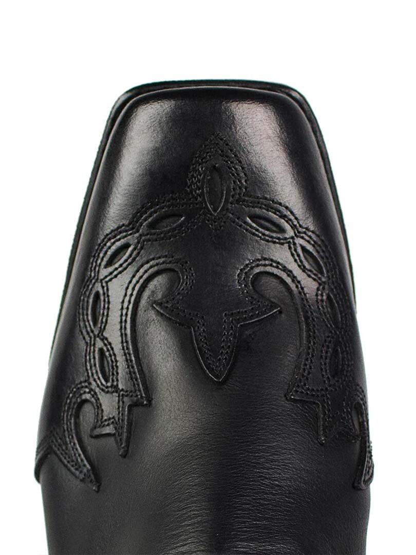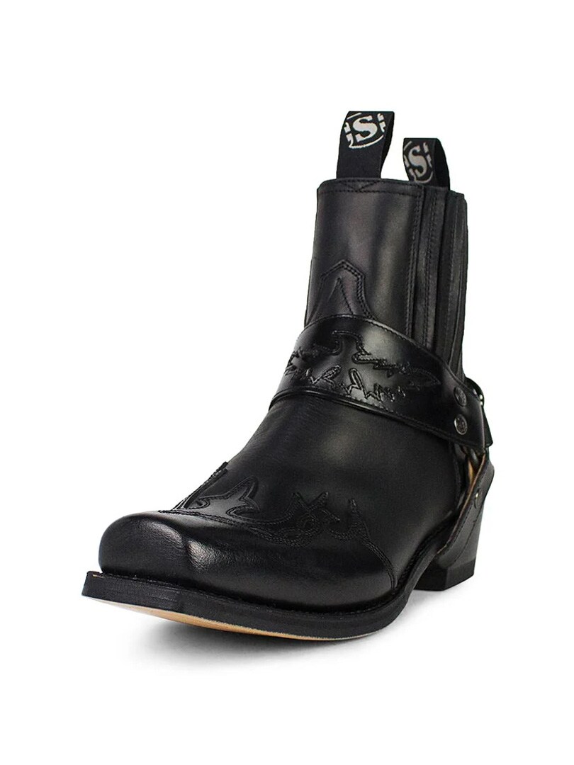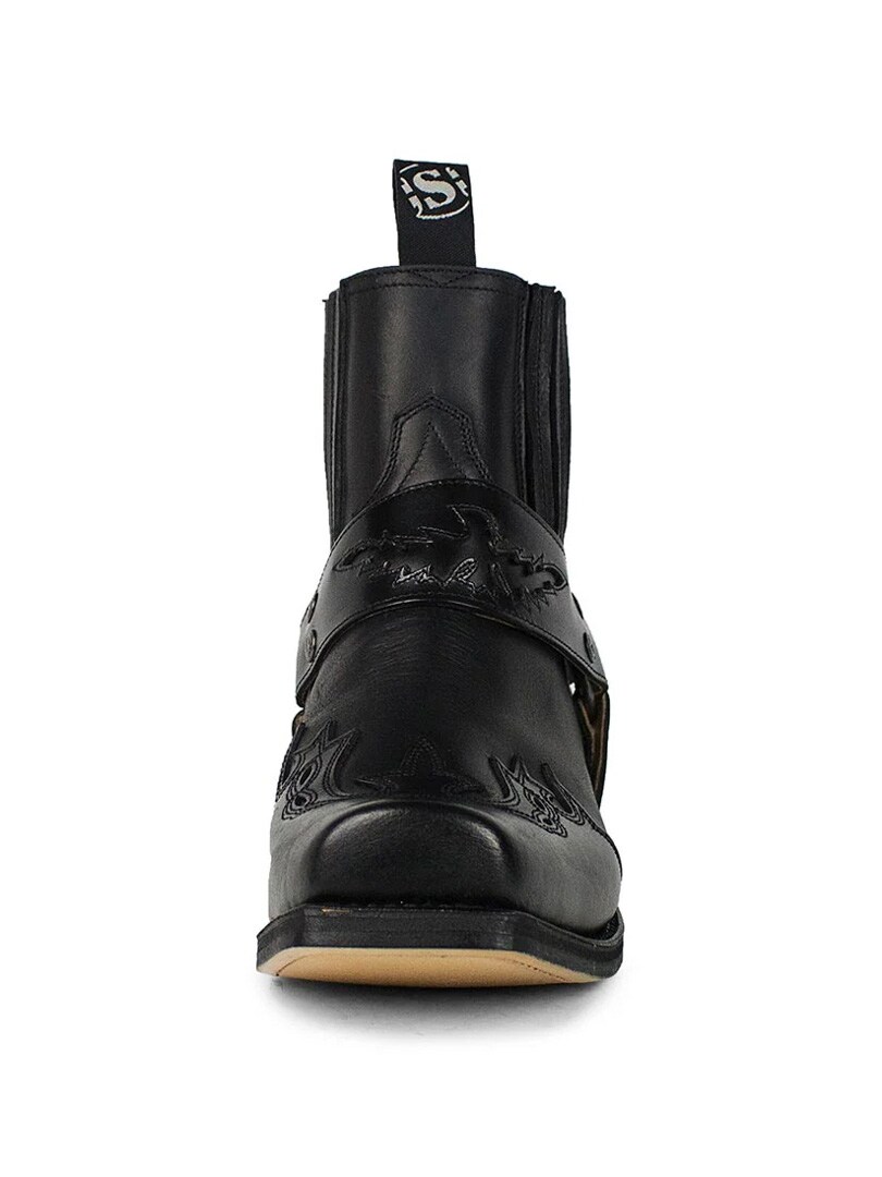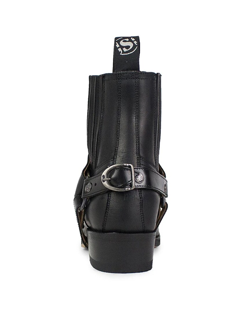 Short western boots that combine classic cowboy aesthetics with a rockin' twist. Crafted from genuine leather with embroidery, decorative harness straps and elasticated side panels for easy on and off. These handcrafted shoes offer both durability and a raw, masculine look.