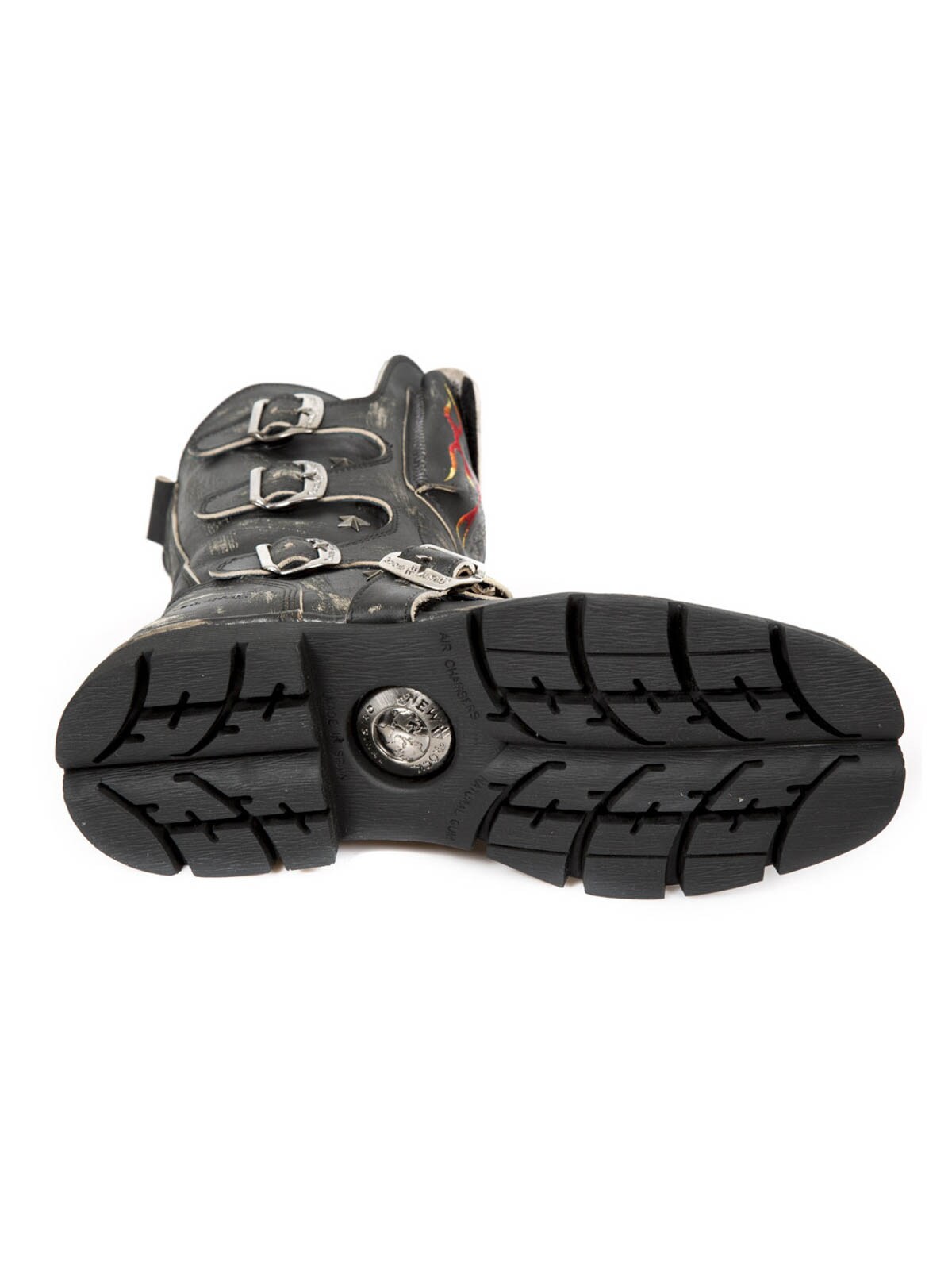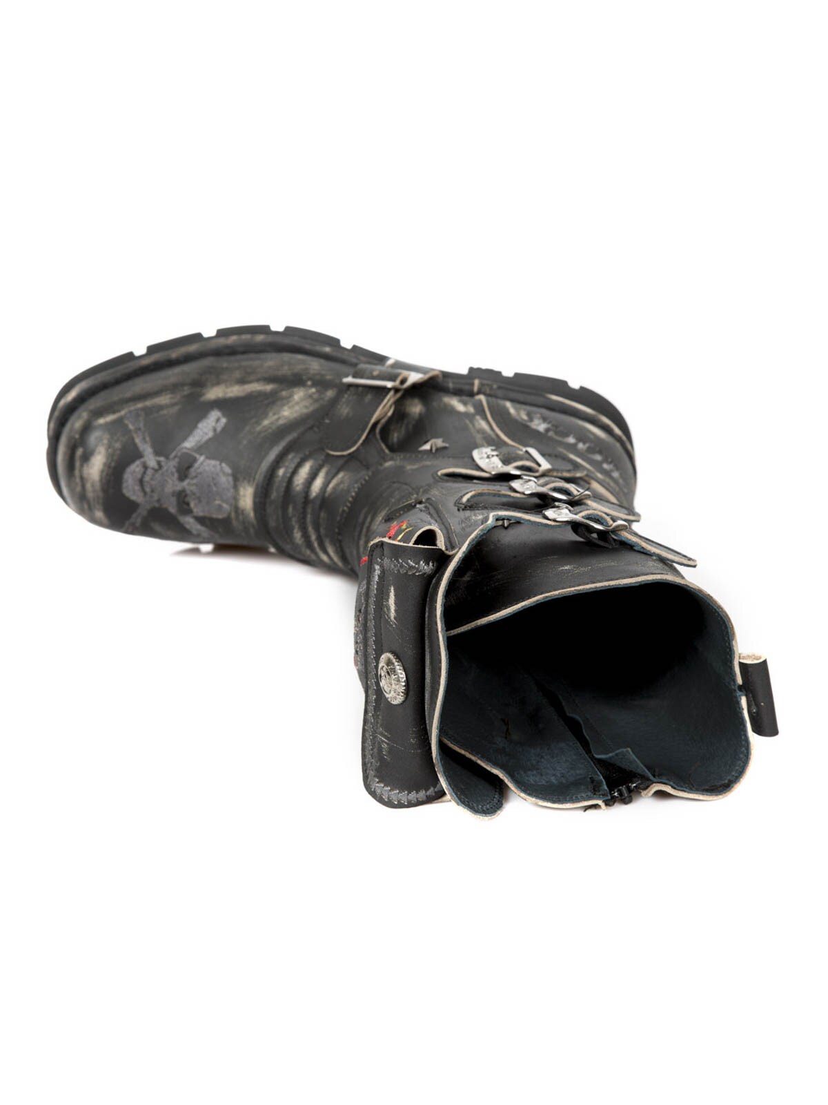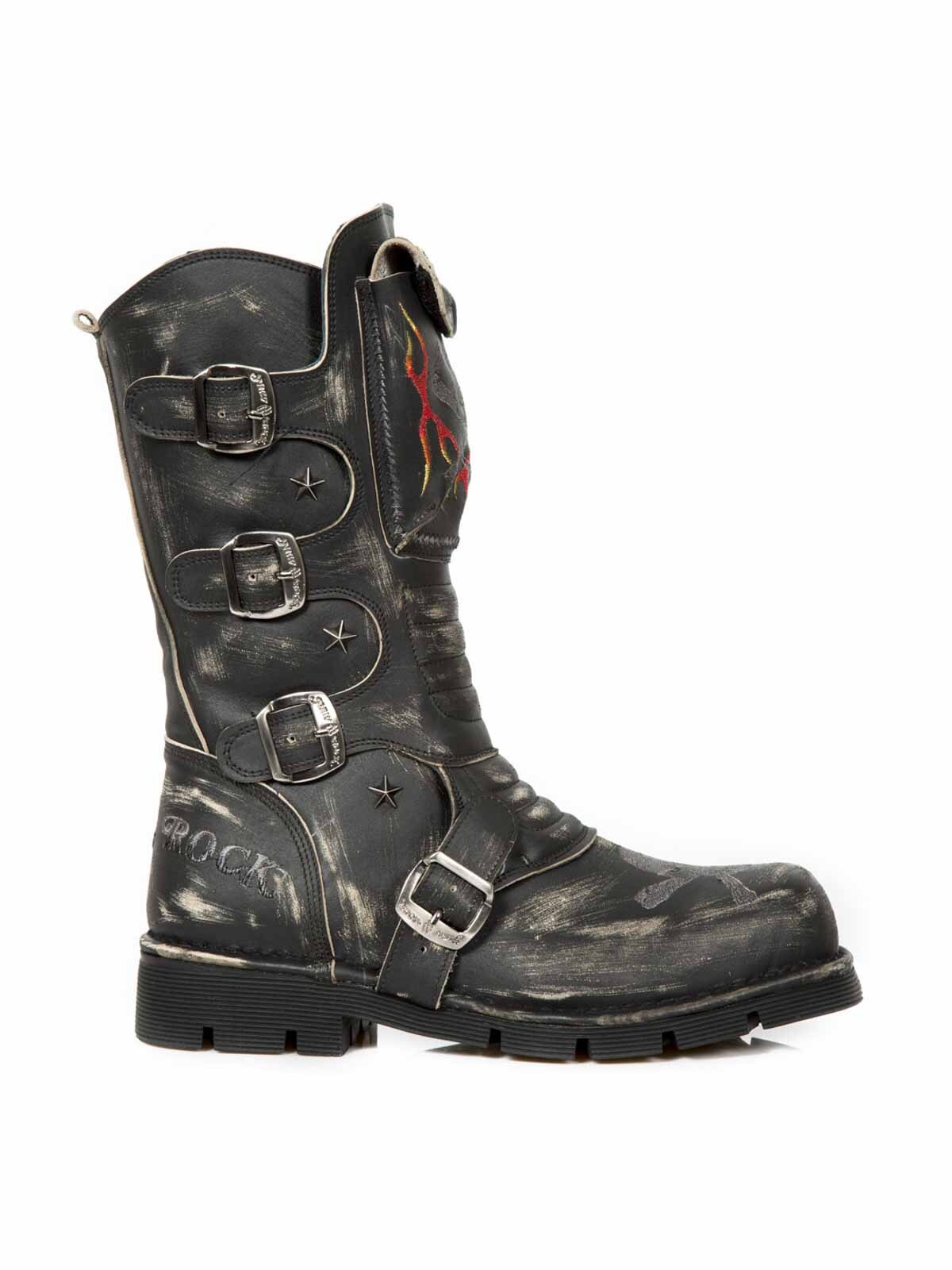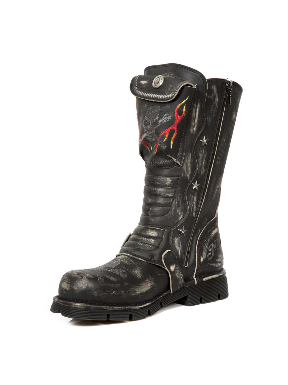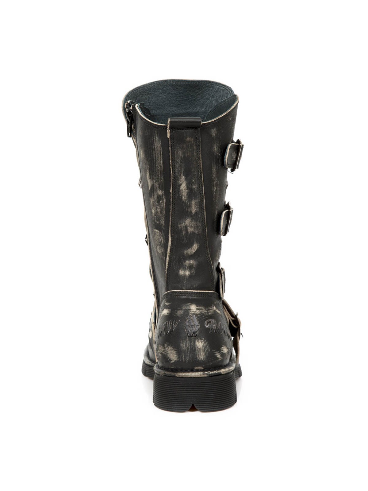 High boot with embroidered pattern. Designed with a closable pocket on the top of the bootleg. Leather buckles with metal locks on the front and a zipper on the inside for easy on and off. New Rock Shoes are handmade from genuine leather and are available in limited editions, making each shoe unique.