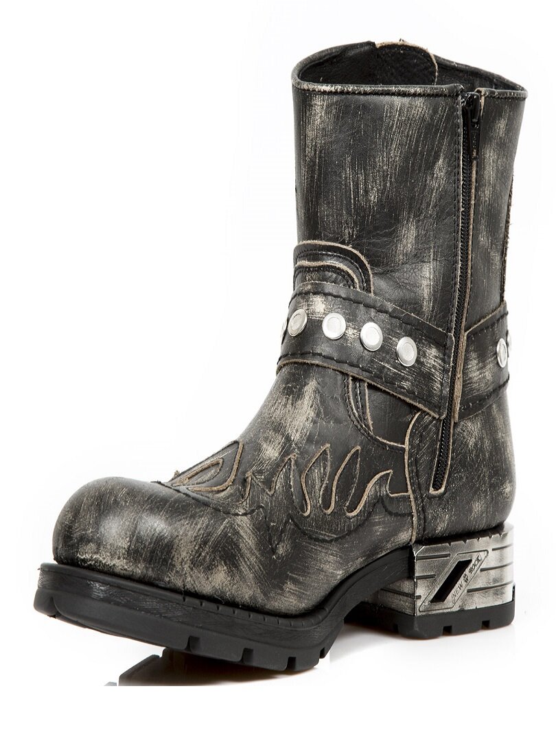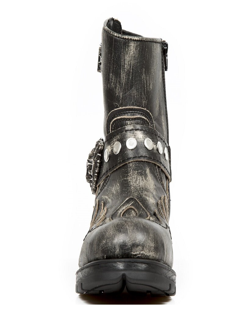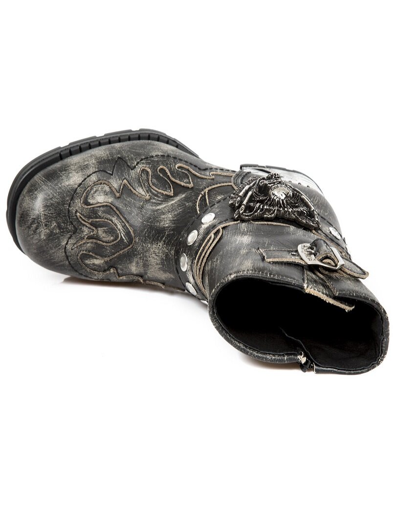 Black shoes with light effects. High bootleg, rough sole and zipper on the inside. Detailed with tough metal buckles and flame pattern. Handmade in real leather and available in limited edition, so each shoe is unique.