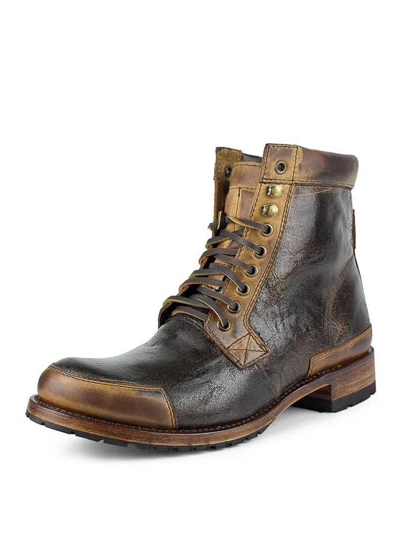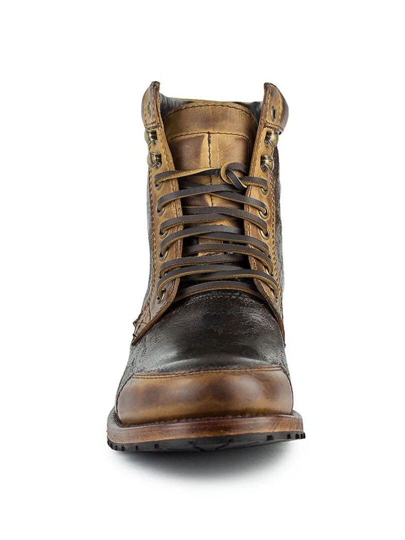 Handcrafted boots in durable leather with a nicely patinated finish for a vintage-inspired look. The classic lacing, reinforced toe and sturdy sole add both style and function. Perfect for those who want a versatile pair of boots with character.