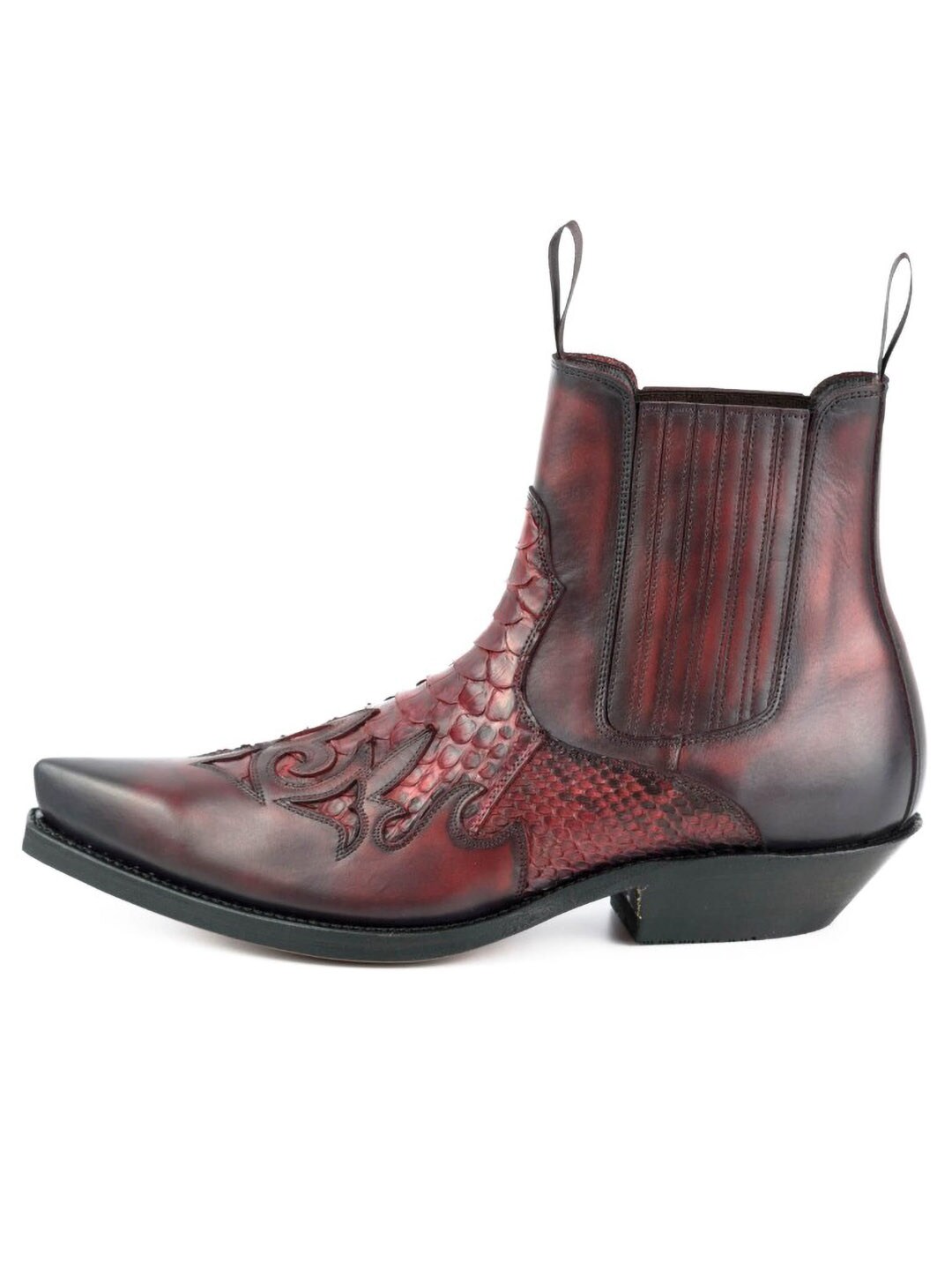 Characterful boots made from cow leather and python skin, with a vintage feel and a handmade finish that gives each pair a unique look. The style features double leather soles and is handmade using the Goodyear Welt system, offering excellent durability, long-lasting wear and a very comfortable fit. An exclusive pair of boots for anyone looking for a style that truly stands out.