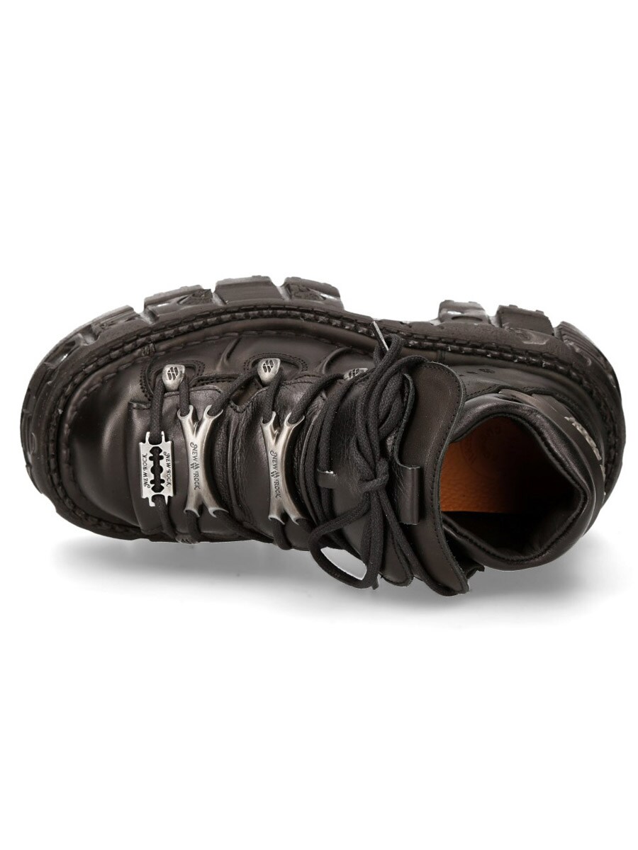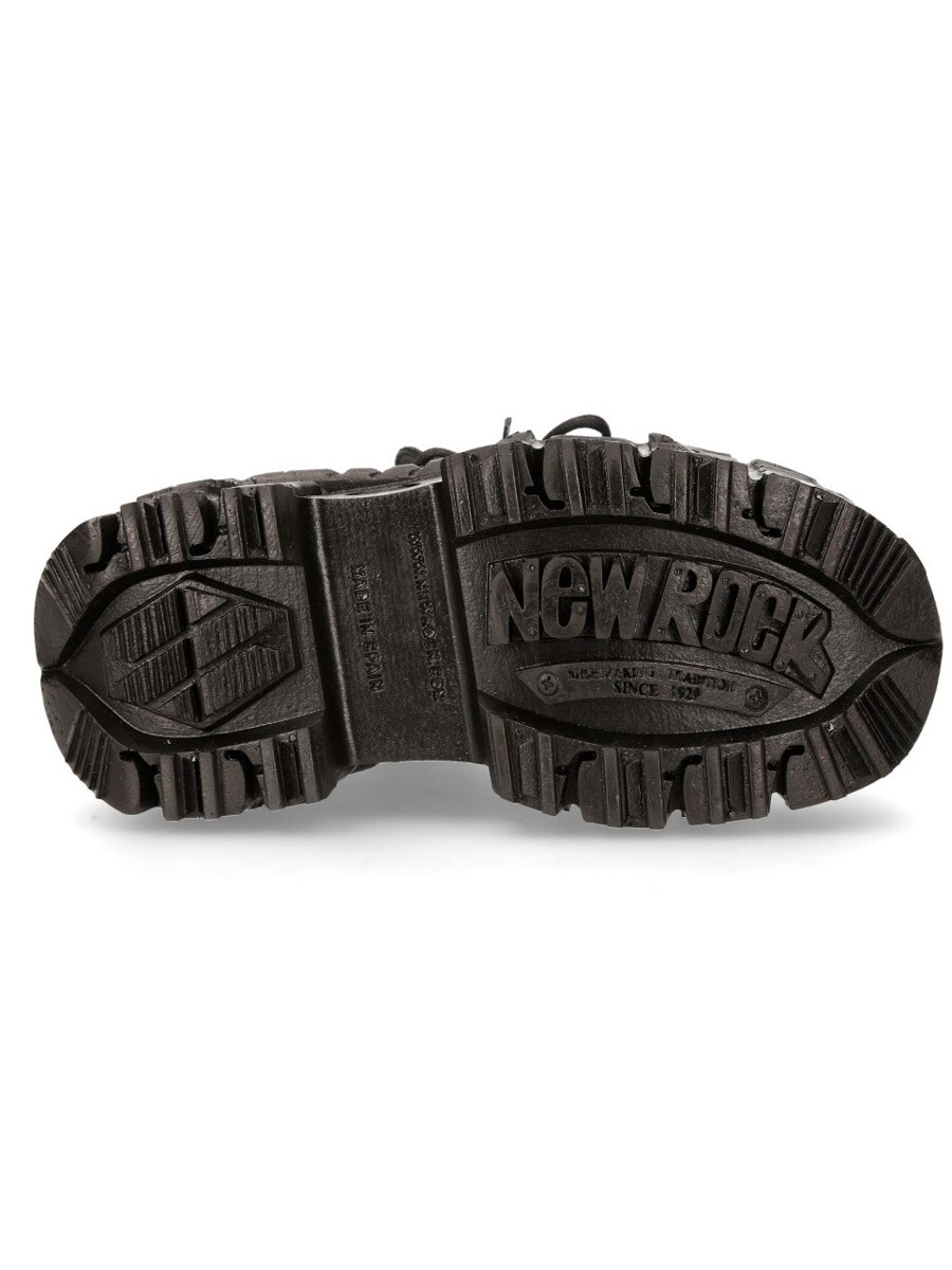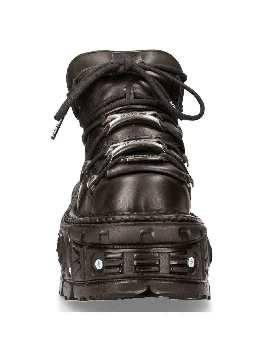 These black, chunky genuine leather shoes are a true statement piece for anyone looking to stand out. Crafted from durable leather with heavy-duty lacing and metallic details. The massive, patterned platform sole is reinforced with studs, offering both height and stability.