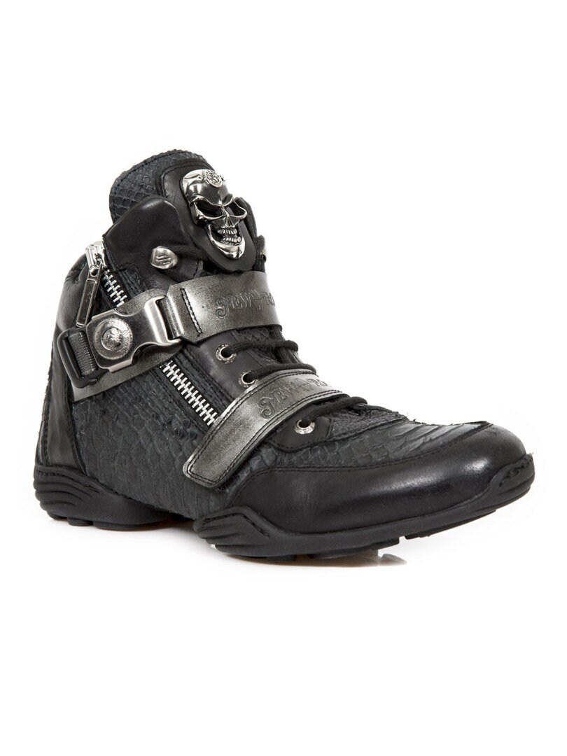 Black sneakers made of high quality leather with straps and metal details for extra attitude. They have lacing, zipper and a rough rubber sole. Available in limited edition, so take the opportunity to get a pair!