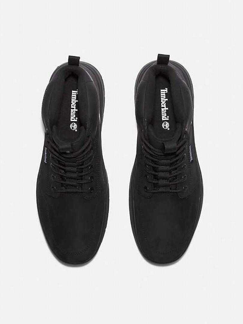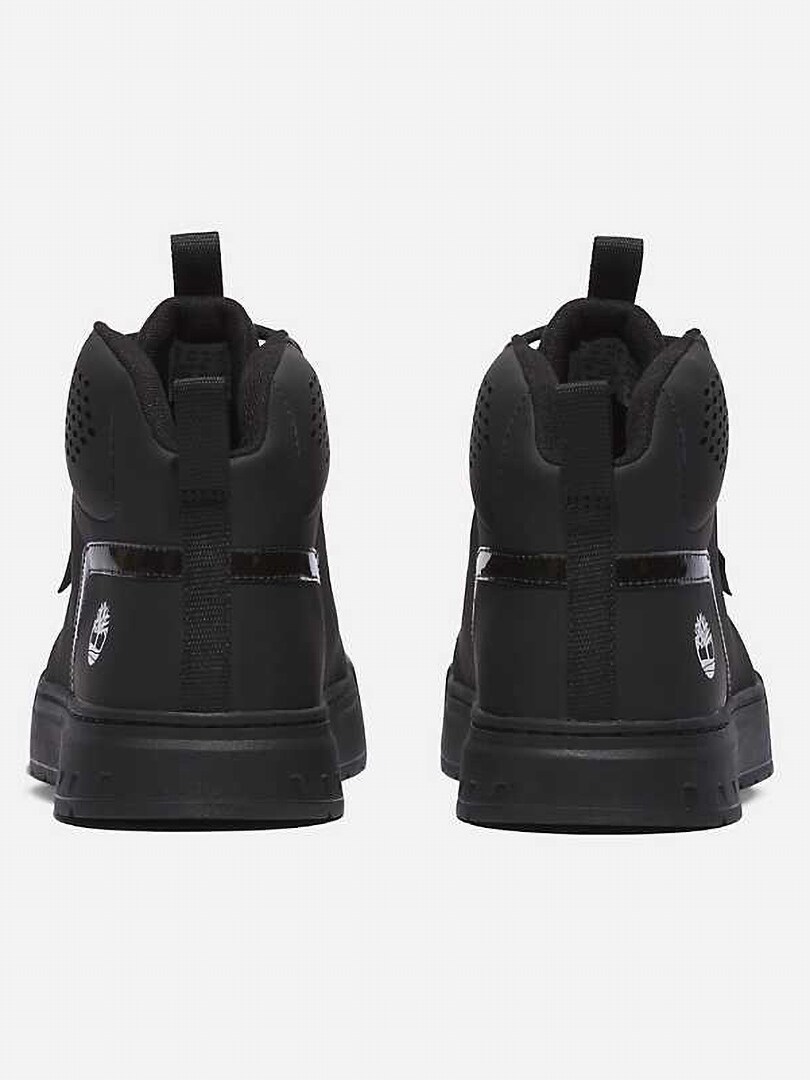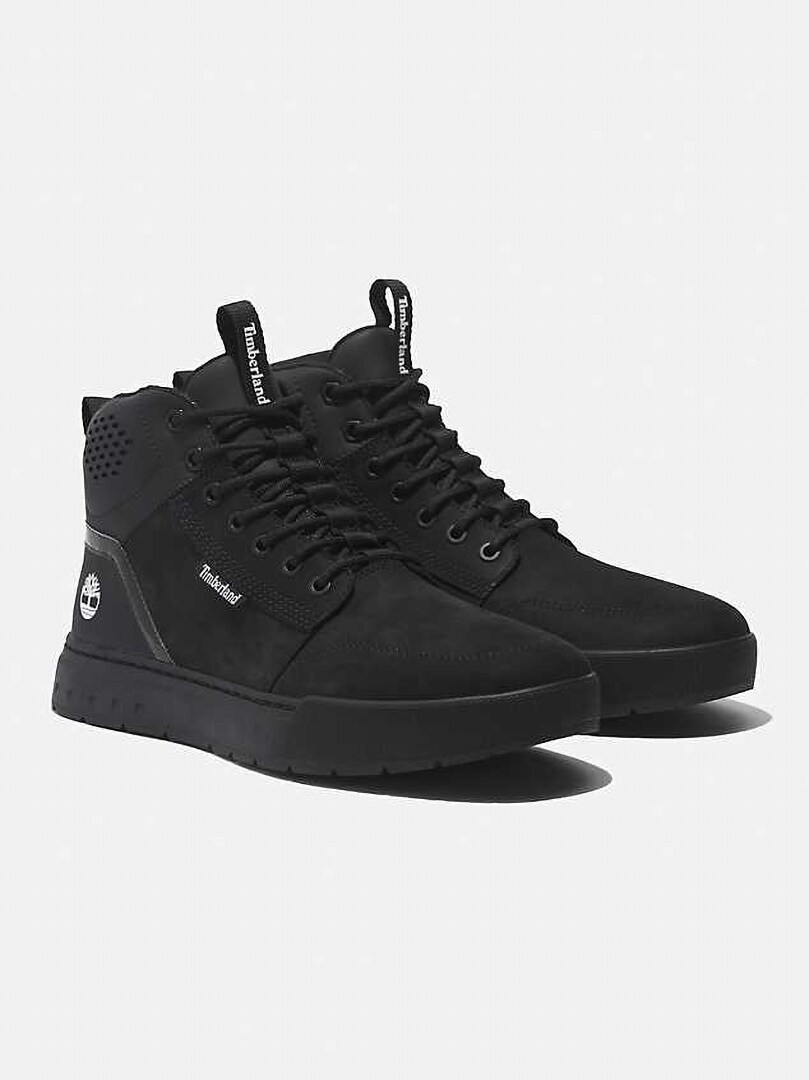 The Timberland Maple Grove Mid Sneaker is a black mid-height sneaker that combines urban style with robust, off-road-worthy performance.