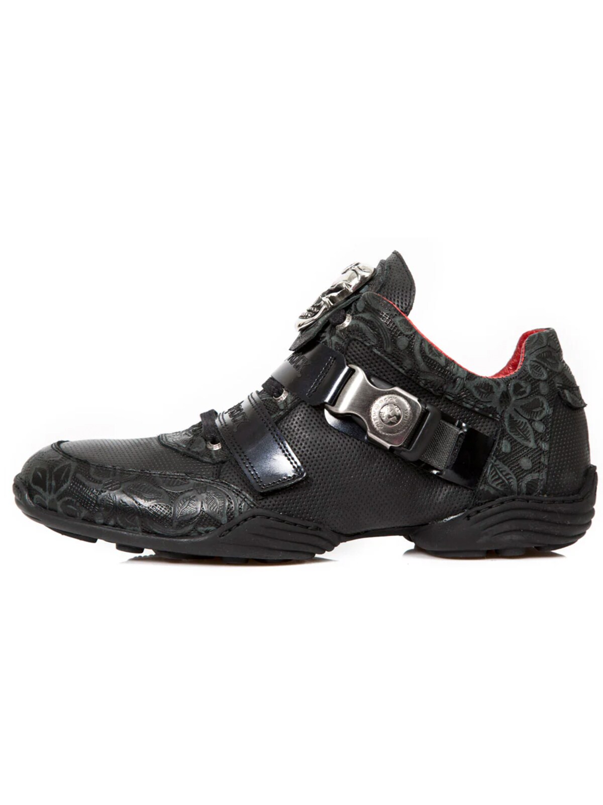 Low leather shoes with rubber sole and straps. They are patterned with red parts and close with a click buckle. Available in limited edition so take the opportunity to get yourself a pair!