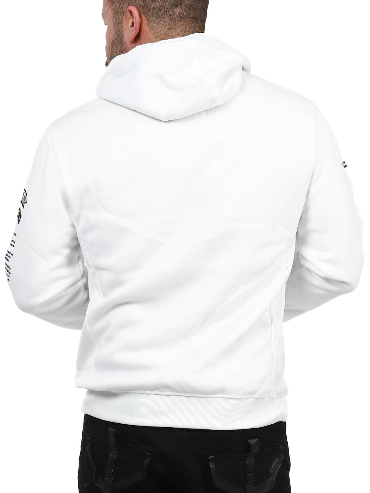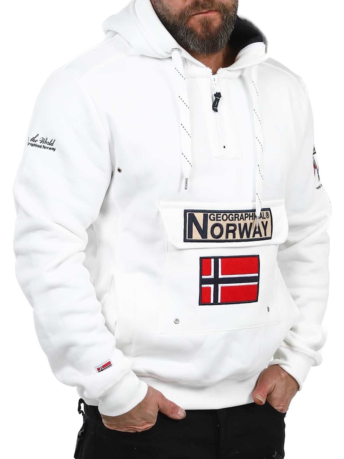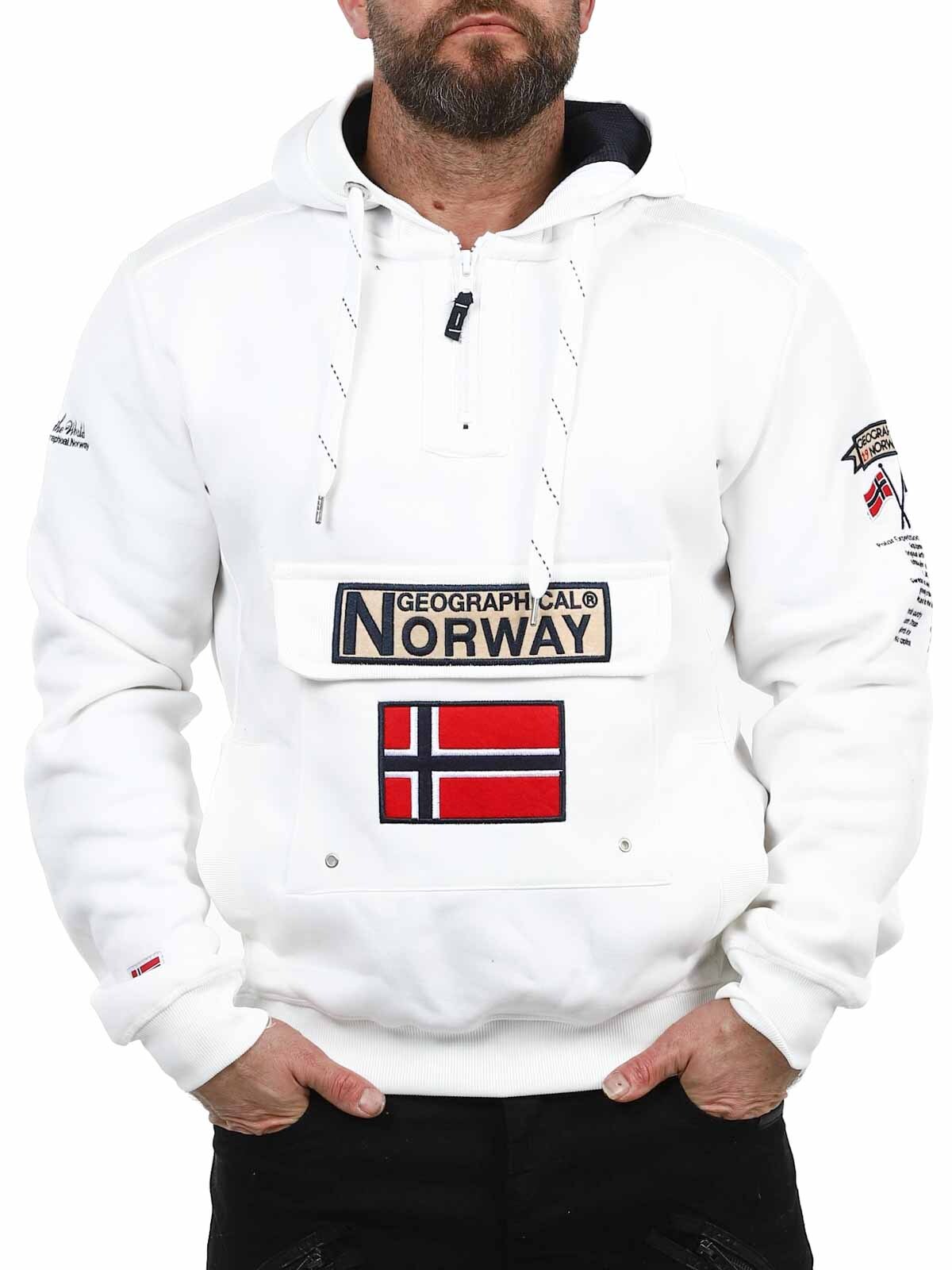 The hoodie has a spacious hood with drawstring and several pockets on the stomach. The brand's classic design is clearly visible at the front and on the sleeves, the neckline can be opened up with a zip. It's a soft sweater with stretchy cuffs at the bottom and cuffs.