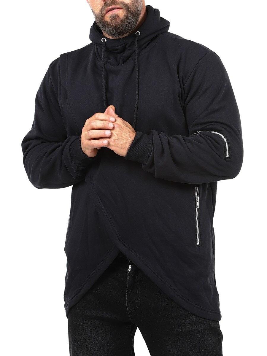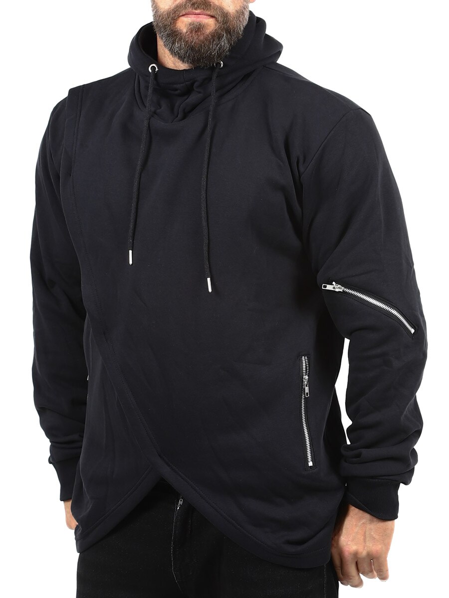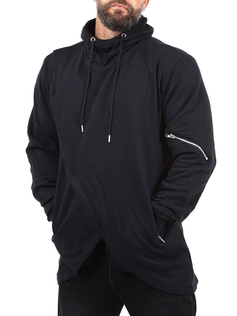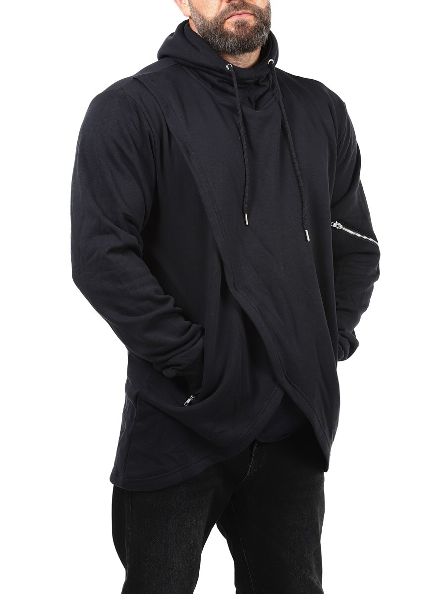 Hoodie in a longer model with a cutout at the bottom. Designed with decorative zippers on the sleeves, drawstring hood and ribbed cuffs. It has two closable front pockets and brushed inside. This sweater can only be found at Rockdenim!