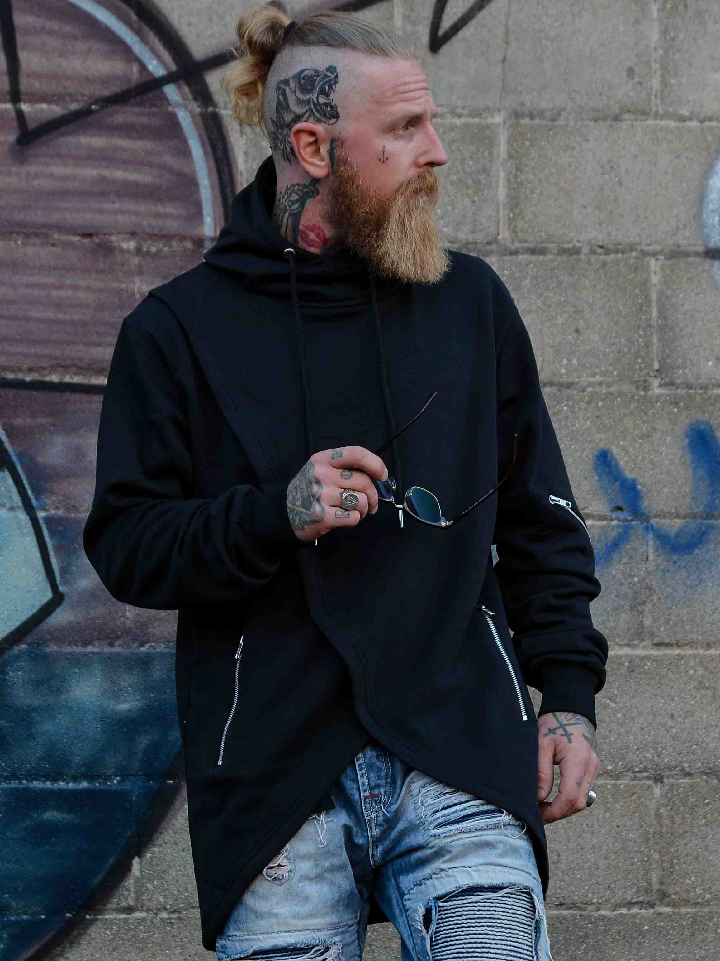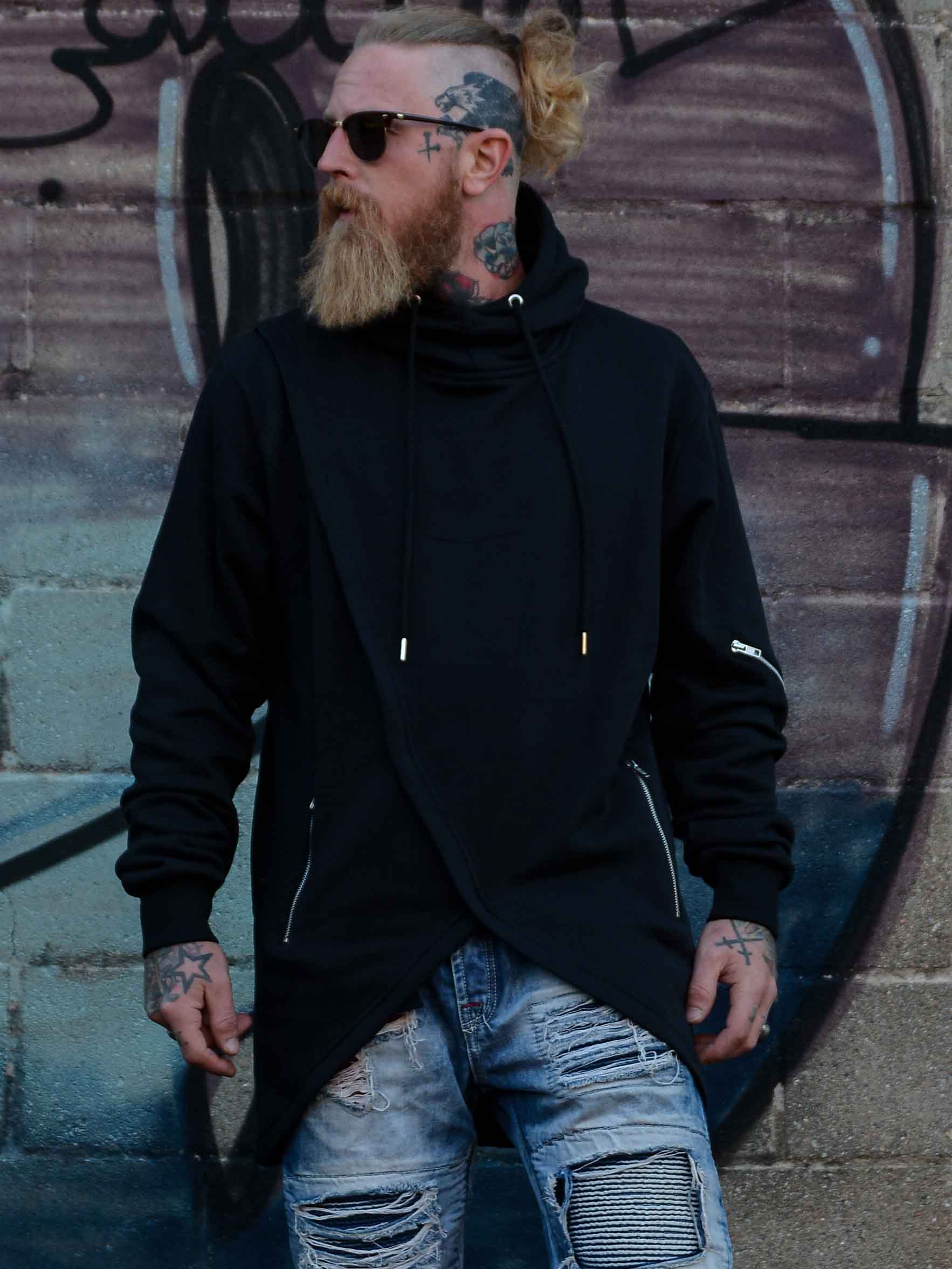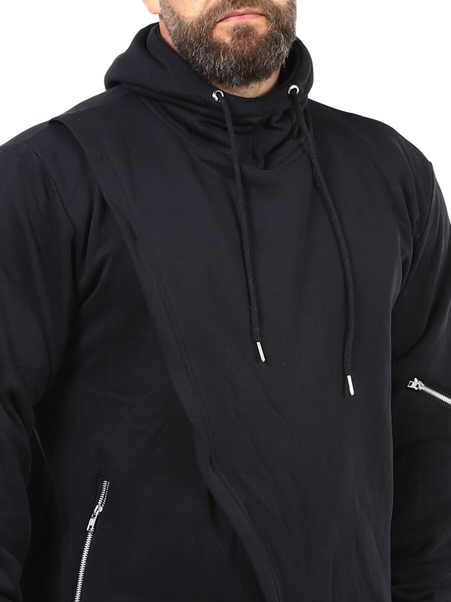 Hoodie in a longer model with a cutout at the bottom. Designed with decorative zippers on the sleeves, drawstring hood and ribbed cuffs. It has two closable front pockets and brushed inside. This sweater can only be found at Rockdenim!