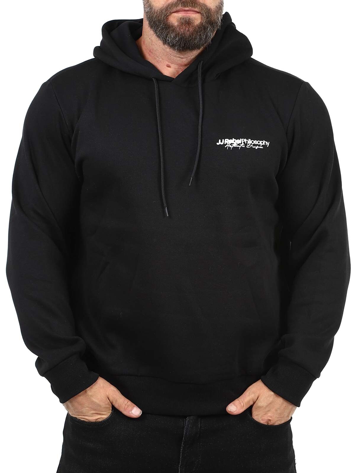 Stylish and comfortable sweatshirt with a practical drawstring hood. Made from soft fabric with a brushed finish on the inside for optimum comfort and warmth. A subtle JJR logo on the chest adds a modern touch. No wardrobe is complete without a few reliable basics!