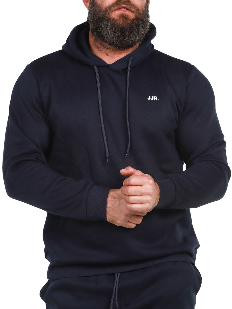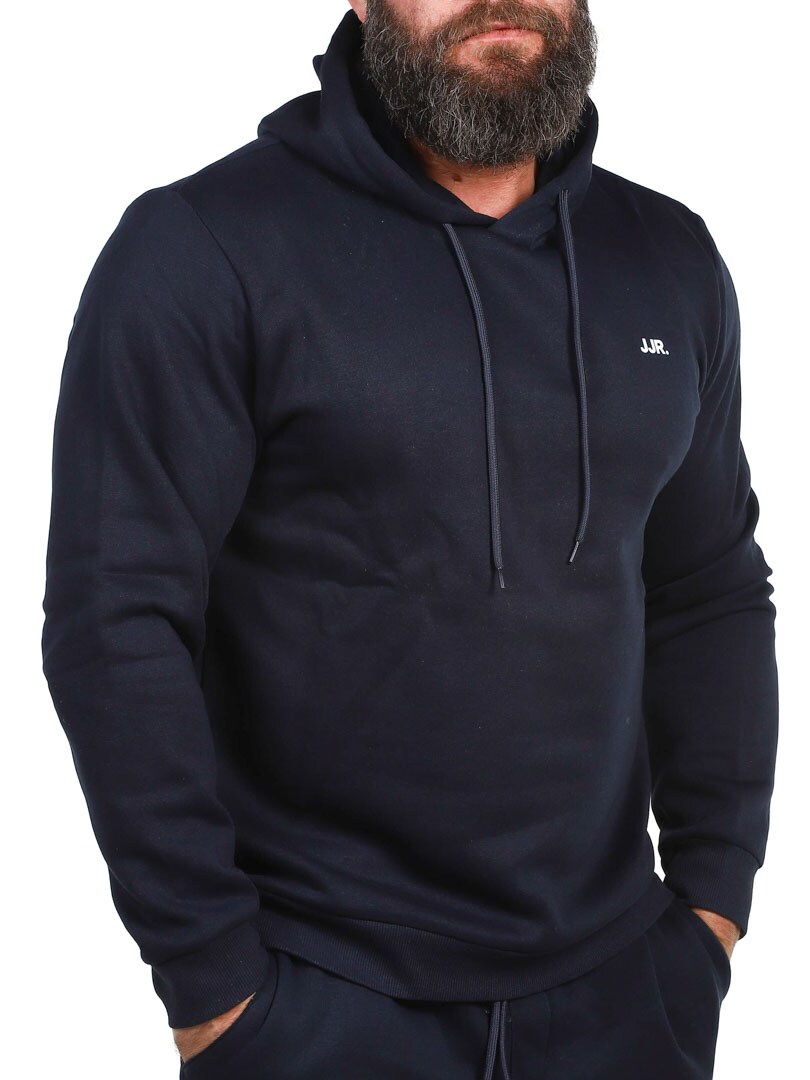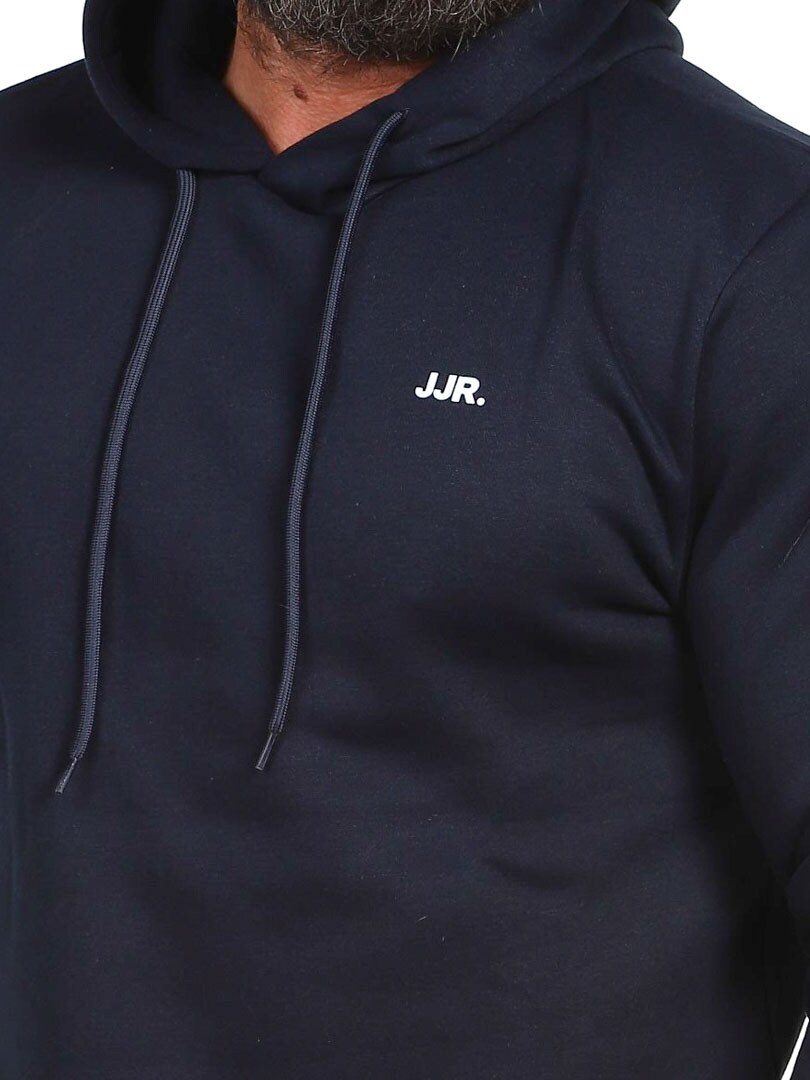 Stylish and comfortable sweatshirt with a practical drawstring hood. Made from soft fabric with a brushed finish on the inside for optimum comfort and warmth. A subtle JJR logo on the chest adds a modern touch. No wardrobe is complete without a few reliable basics!