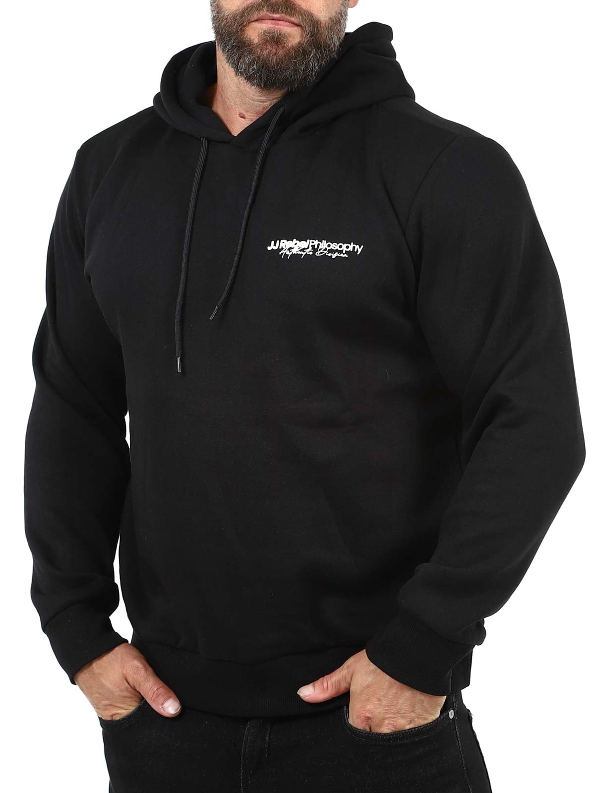 Stylish and comfortable sweatshirt with a practical drawstring hood. Made from soft fabric with a brushed finish on the inside for optimum comfort and warmth. A subtle JJR logo on the chest adds a modern touch. No wardrobe is complete without a few reliable basics!