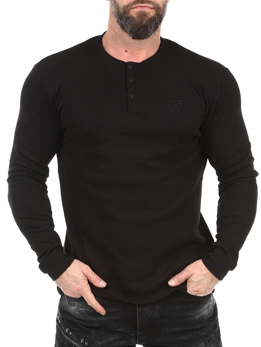 Solid-colour longsleeve made from a stretch waffle-textured fabric that provides both comfort and a modern look. Features a crew neckline with three buttons and an embroidered logo on the chest. The flexible material ensures all-day comfort and makes it easy to style for both everyday wear and relaxed occasions.