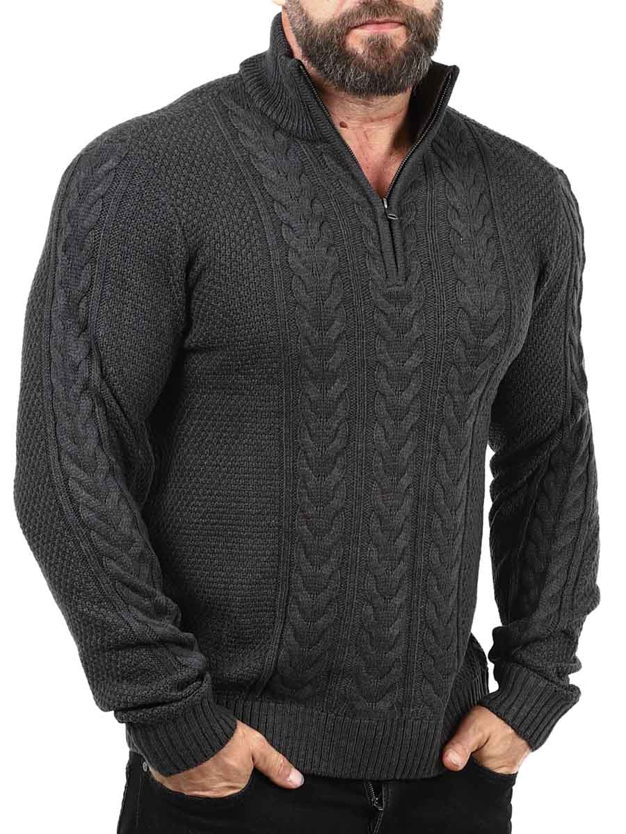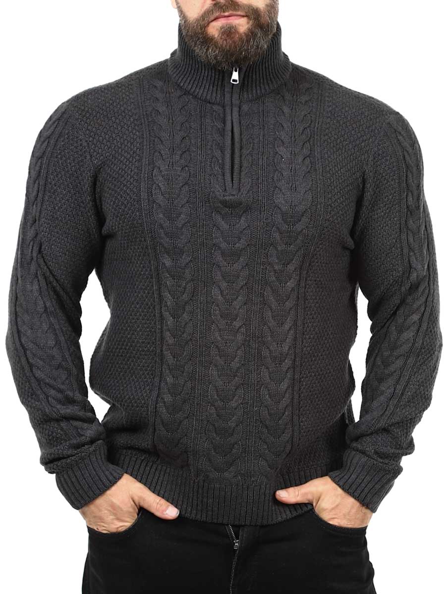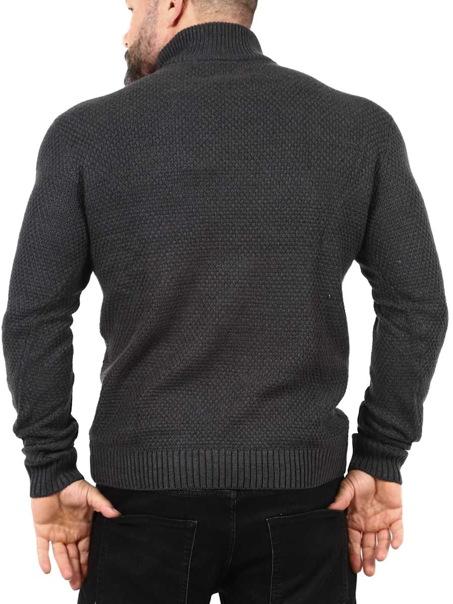 A timeless classic with modern function. This dark knitted sweater is made from a soft, warming material. Designed with ribbed cuffs and hem, high hem and zipper. Perfect to wear as a layer under a jacket or as a stylish garment on its own.