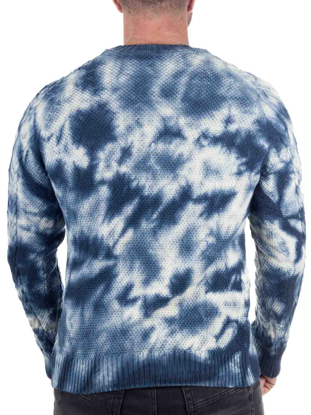 Eilo Cipo & Baxx Knitted Sweater - Dark Blue is an eye-catching men's sweater from Cipo & Baxx, with cable knit and unique tie-dye pattern.