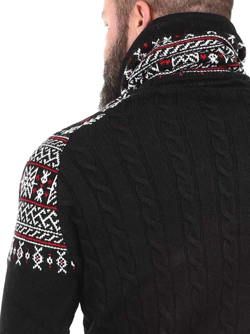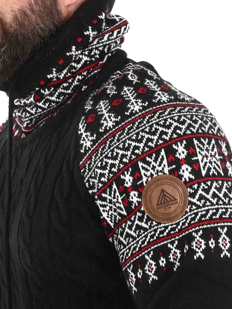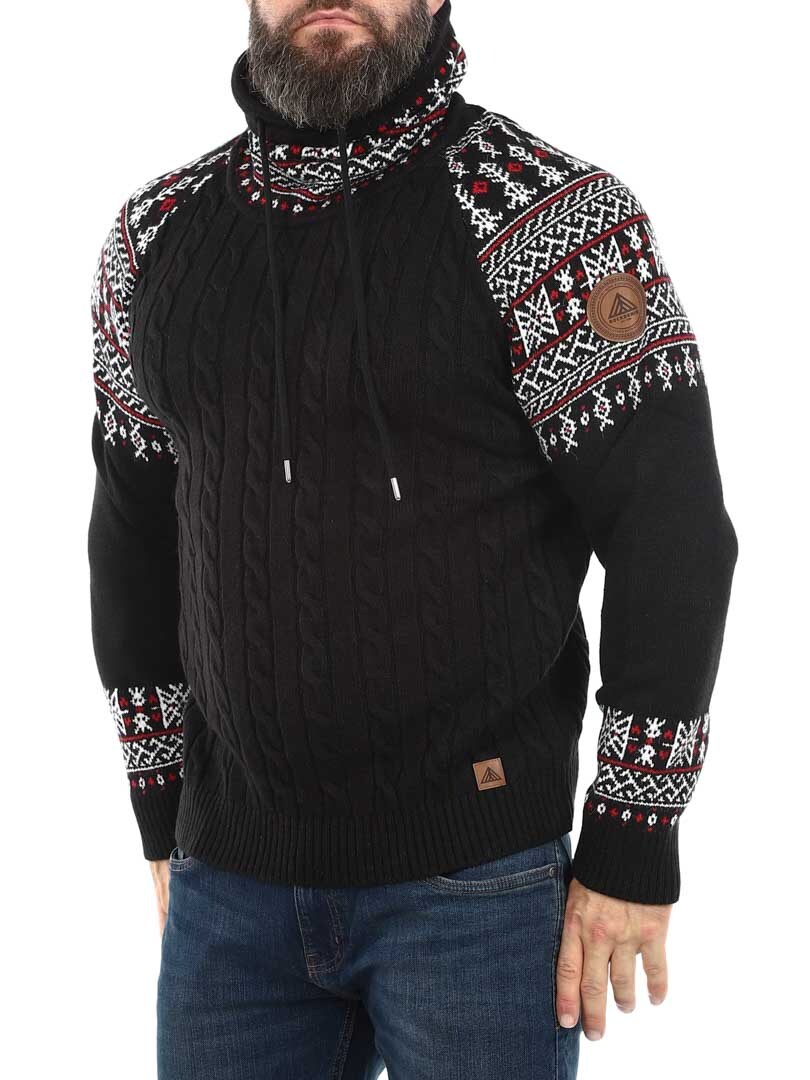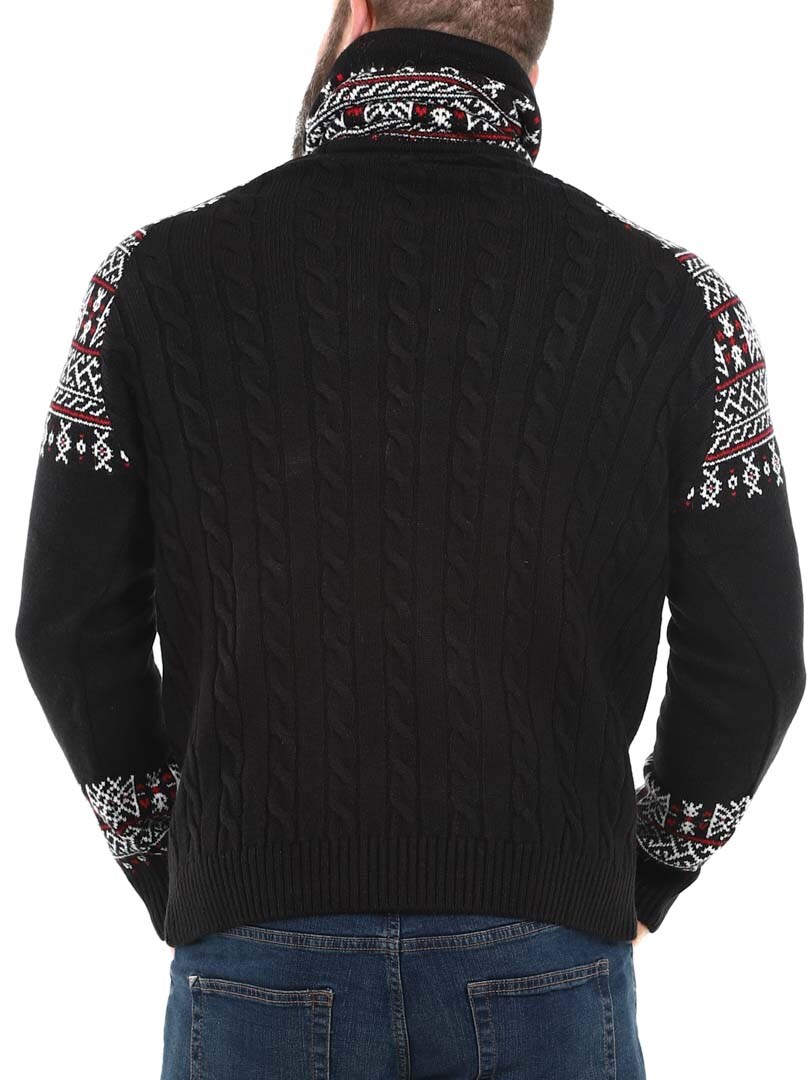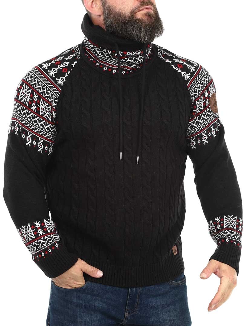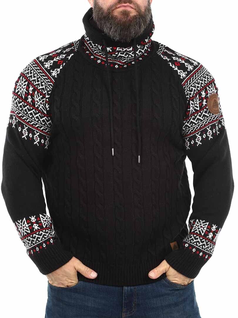 Cable knit sweater. Designed with a high neck that can be adjusted with laces. The sleeves and neck are highlighted with a stylish pattern in contrasting colors. This sweater is specially made for our customers and is only available at RockDenim!