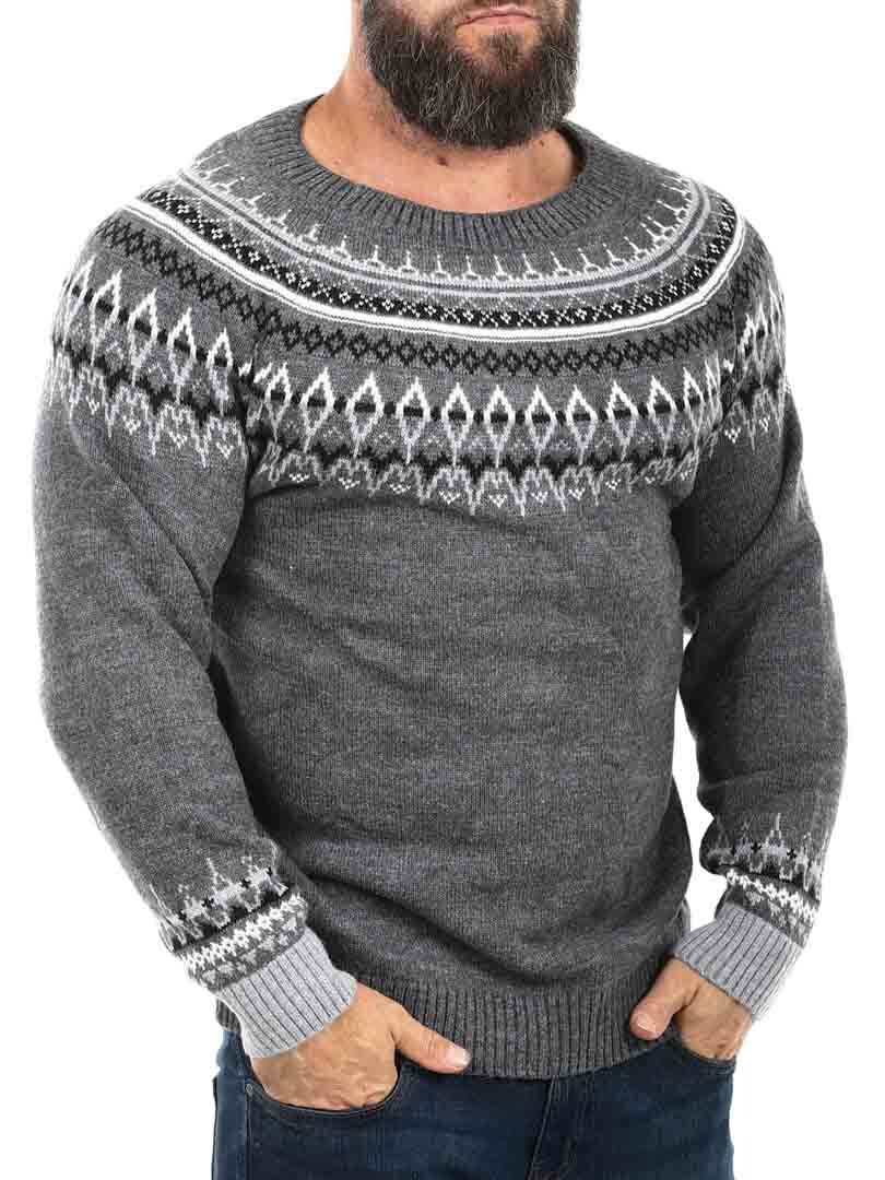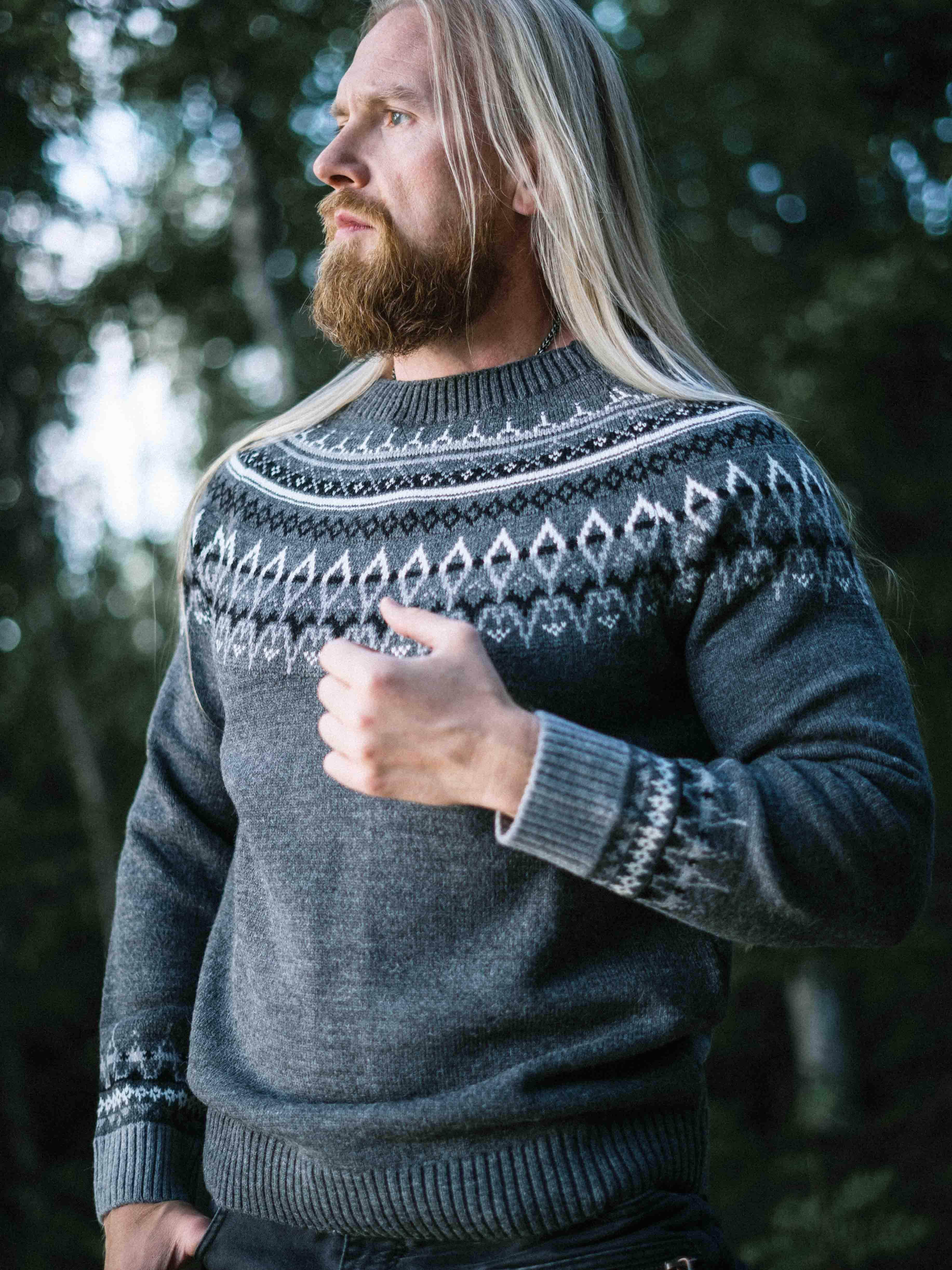 Embrace the true Nordic heritage with our classic sweater, inspired by traditional Viking symbols and Scandinavian patterns. Its sturdy, wool-like texture provides both warmth and durability, while the detailed pattern across the chest and shoulders adds a timeless, masculine touch. Perfect for cold days—whether out in nature or for everyday wear.
