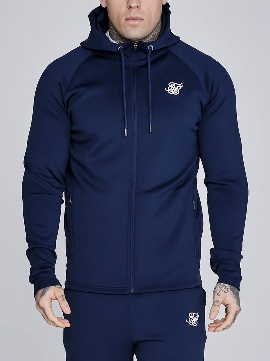 A hoodie designed with two closable front pockets and an embroidered chest logo. It’s made from a soft and flexible material that provides excellent comfort for both everyday wear and workouts. It features a form-fitting silhouette that enhances your shape without restricting movement. Elevate your streetwear style with this sleek zip hoodie.