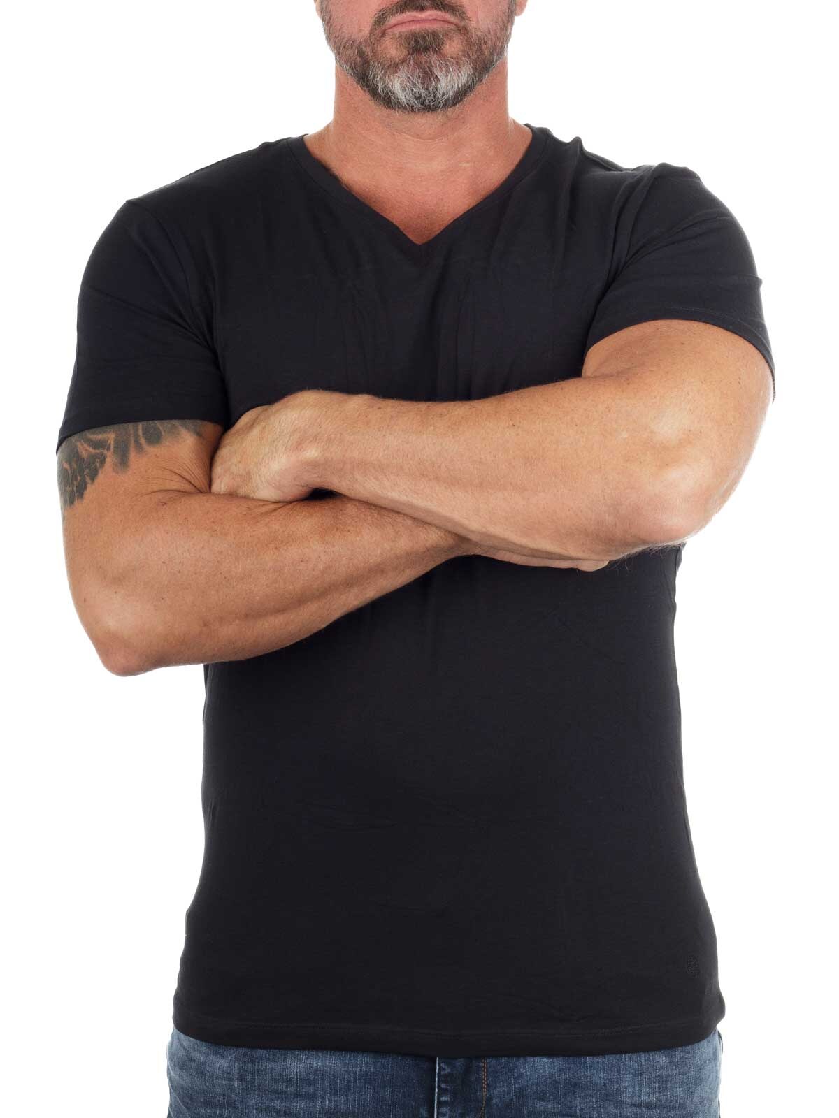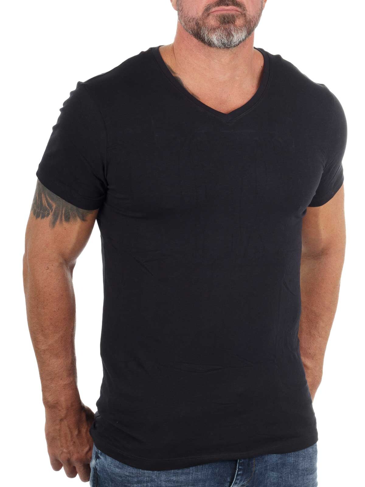 Solid-colored t-shirts in a convenient two-pack. Stretchy model with a slim fit and V-neckline. Slightly thinner fabric quality, making them ideal for wearing under a shirt or a knitted sweater.