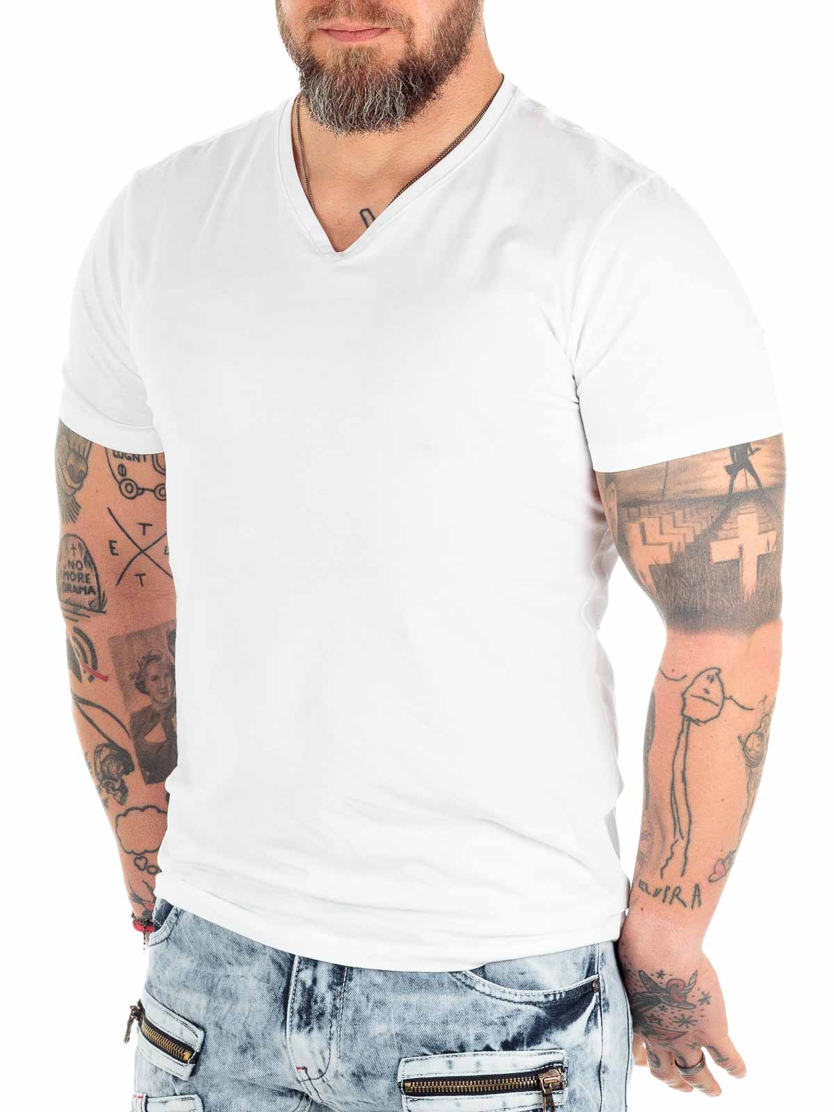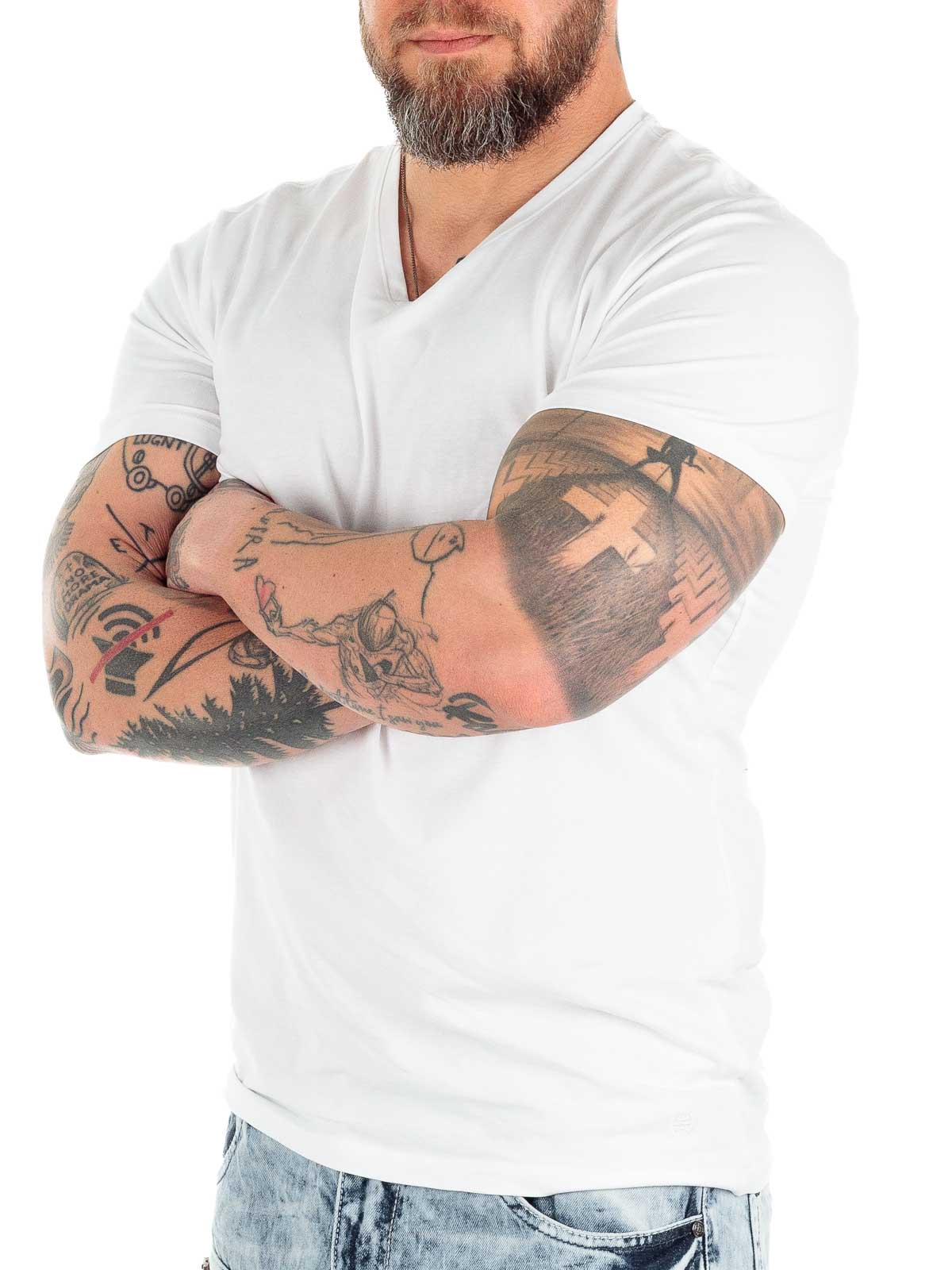 Solid-colored t-shirts in a convenient two-pack. Stretchy model with a slim fit and V-neckline. Slightly thinner fabric quality, making them ideal for wearing under a shirt or a knitted sweater.