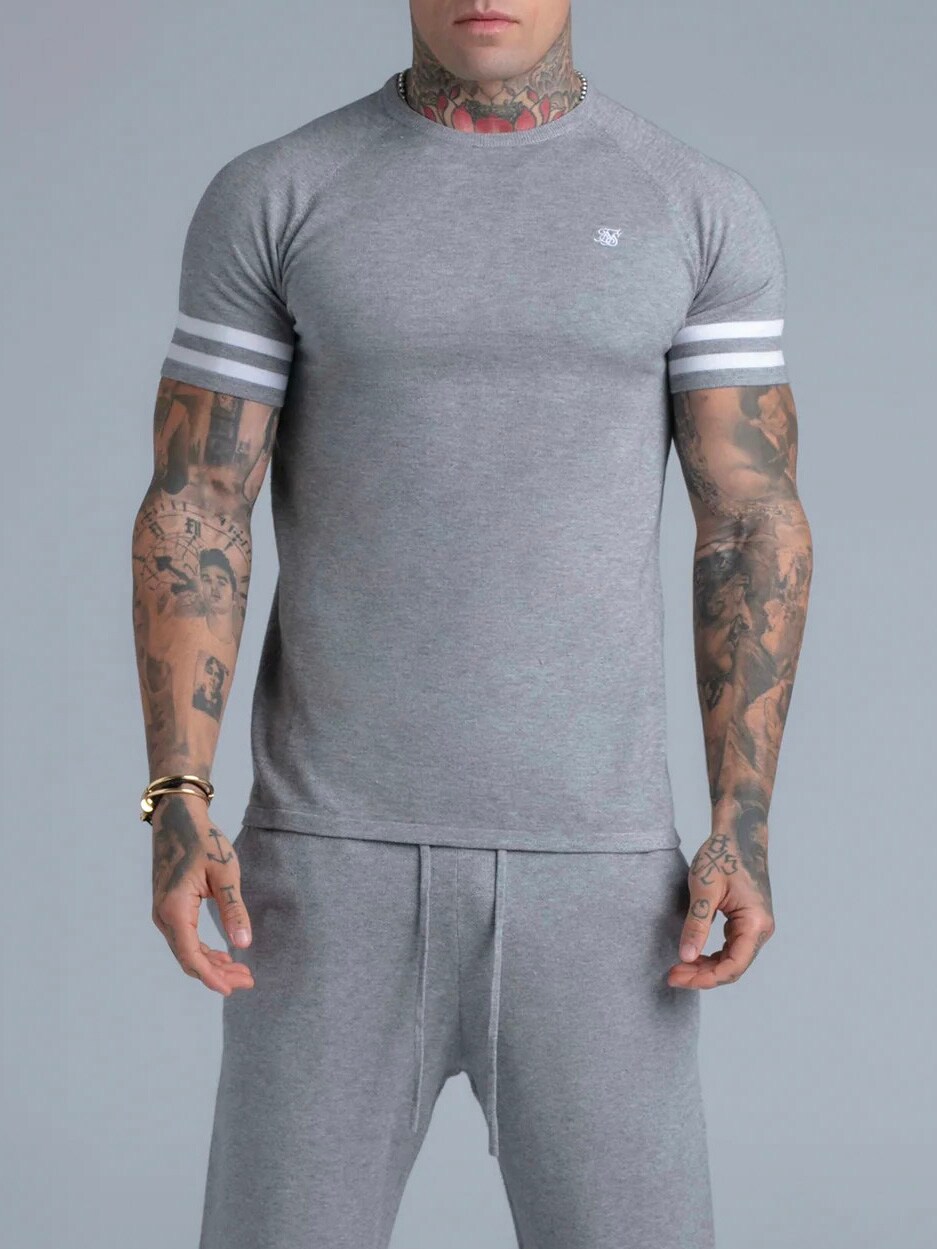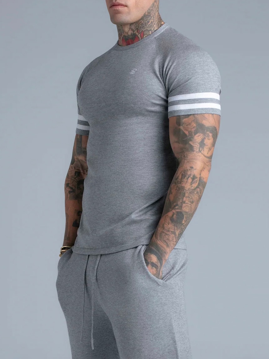 Solid-colour T‑shirt featuring the logo on the chest and stripes on the sleeves. The T‑shirt has a classic round neckline and short sleeves for a timeless look. Made from soft and stretchable material.