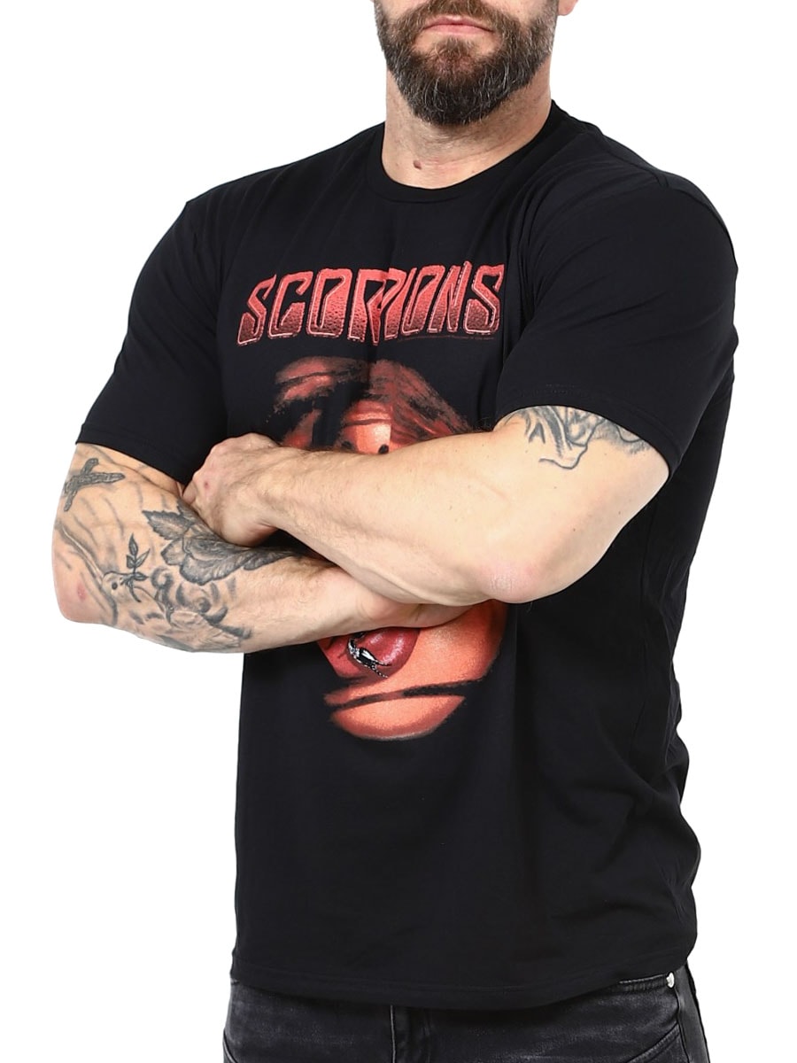 The Scorpions Tongue T-shirt in black is an iconic tribute to the legendary rock band.