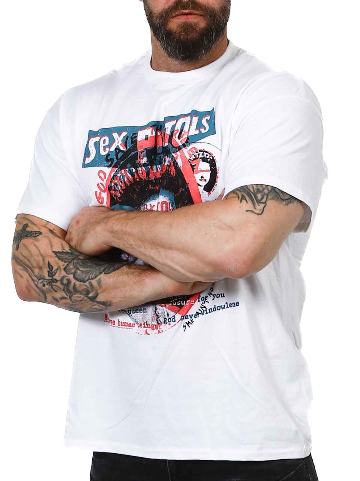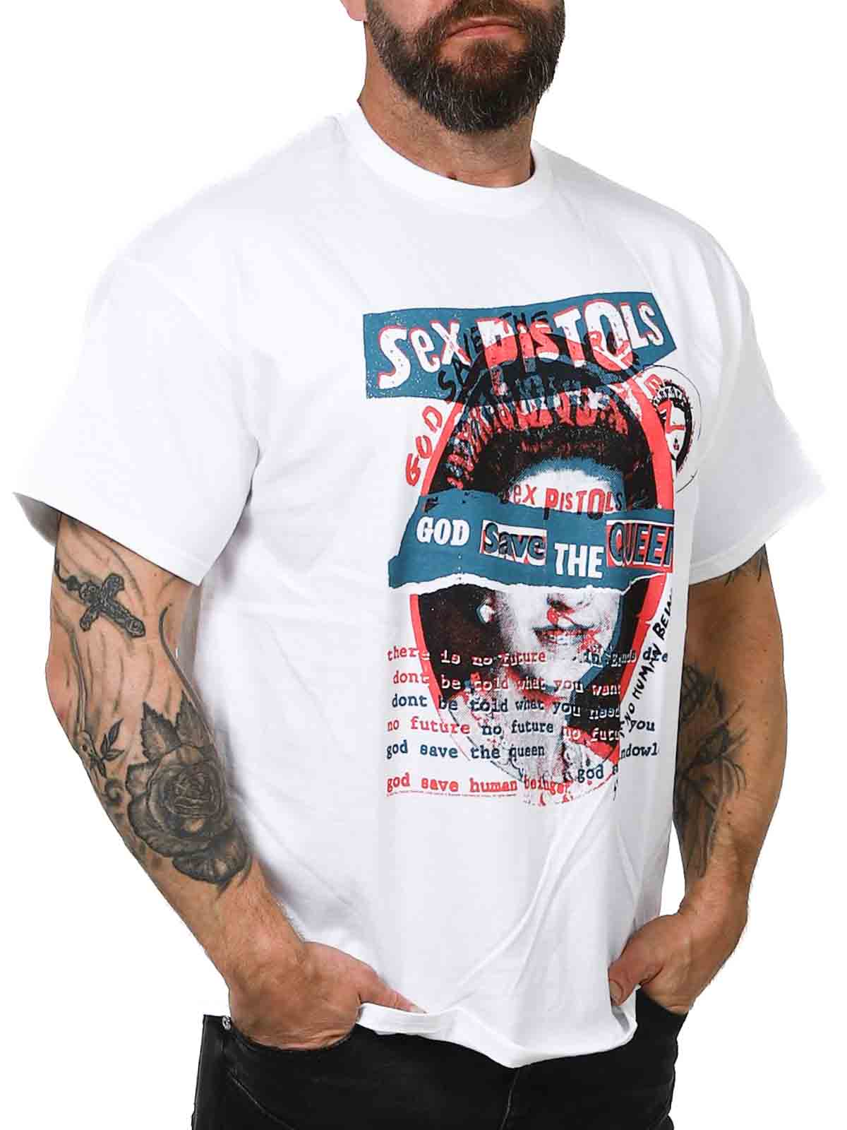 Band Merch Sex Pistols God Save The Queen T-shirt in white is a rebellious must-have for every music lover.