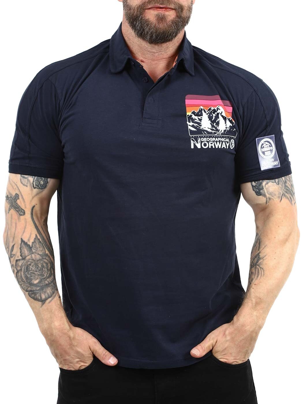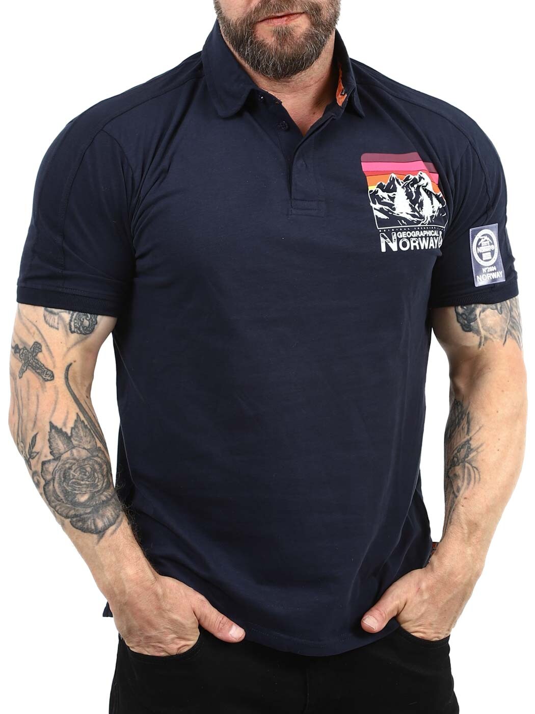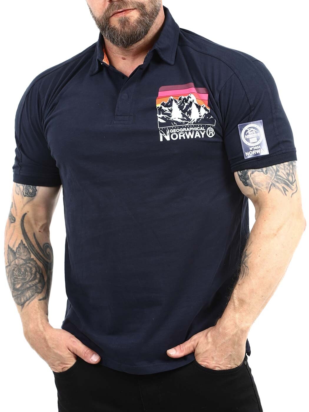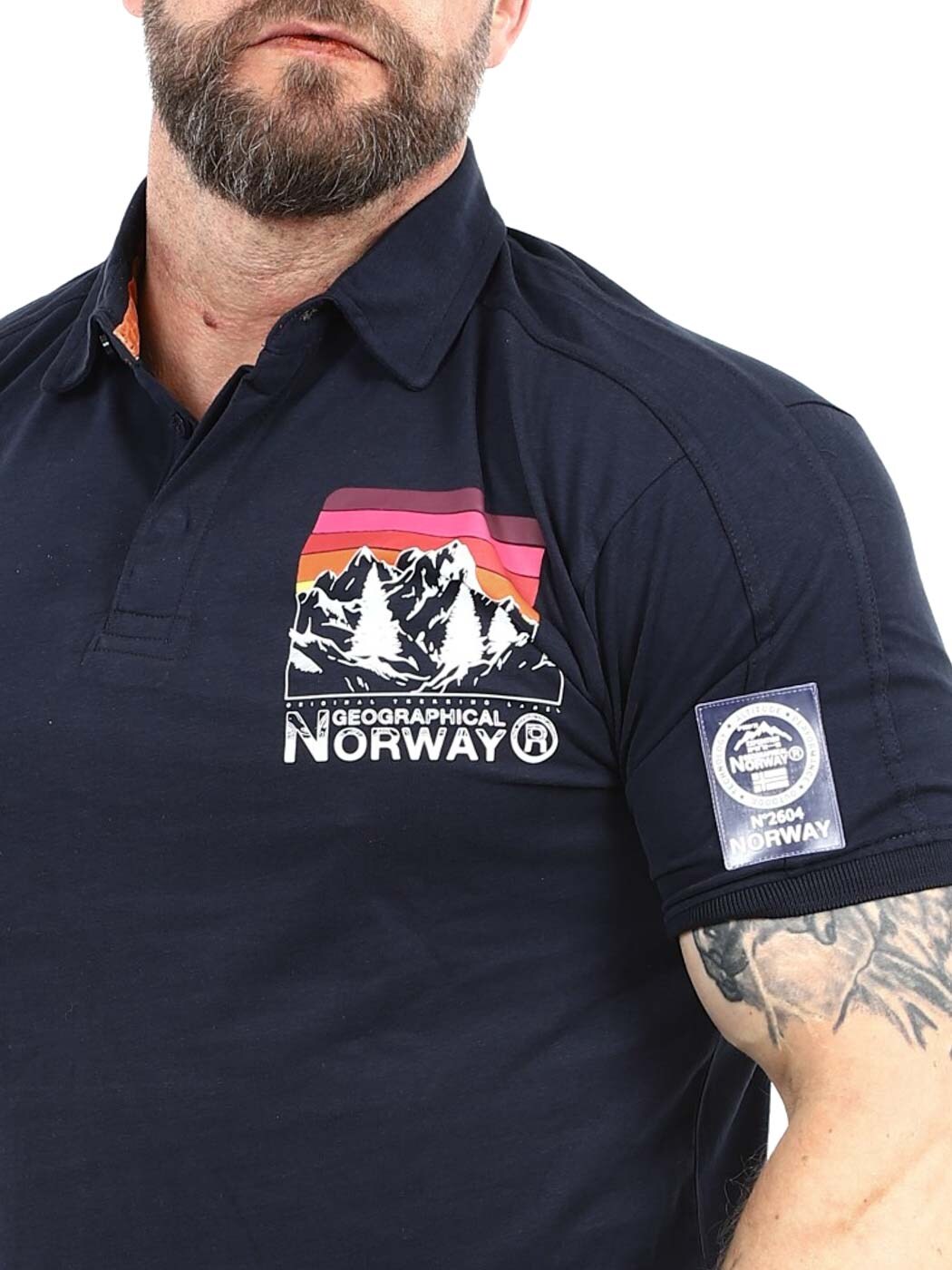 Stylish t-shirt designed with prints on both the front and back in contrasting colors. It has a collar with buttoning and ribbed cuffs. Made in 100% soft cotton.