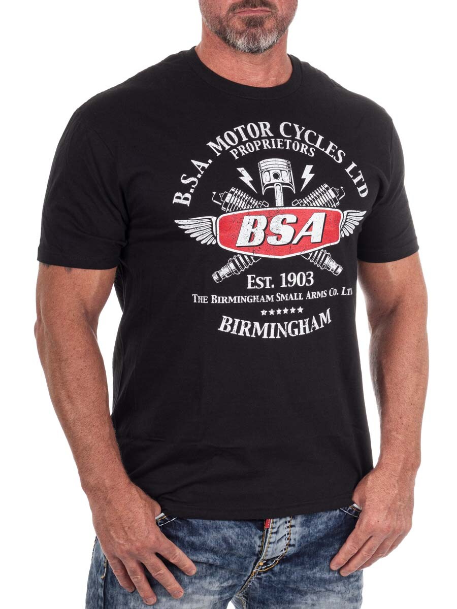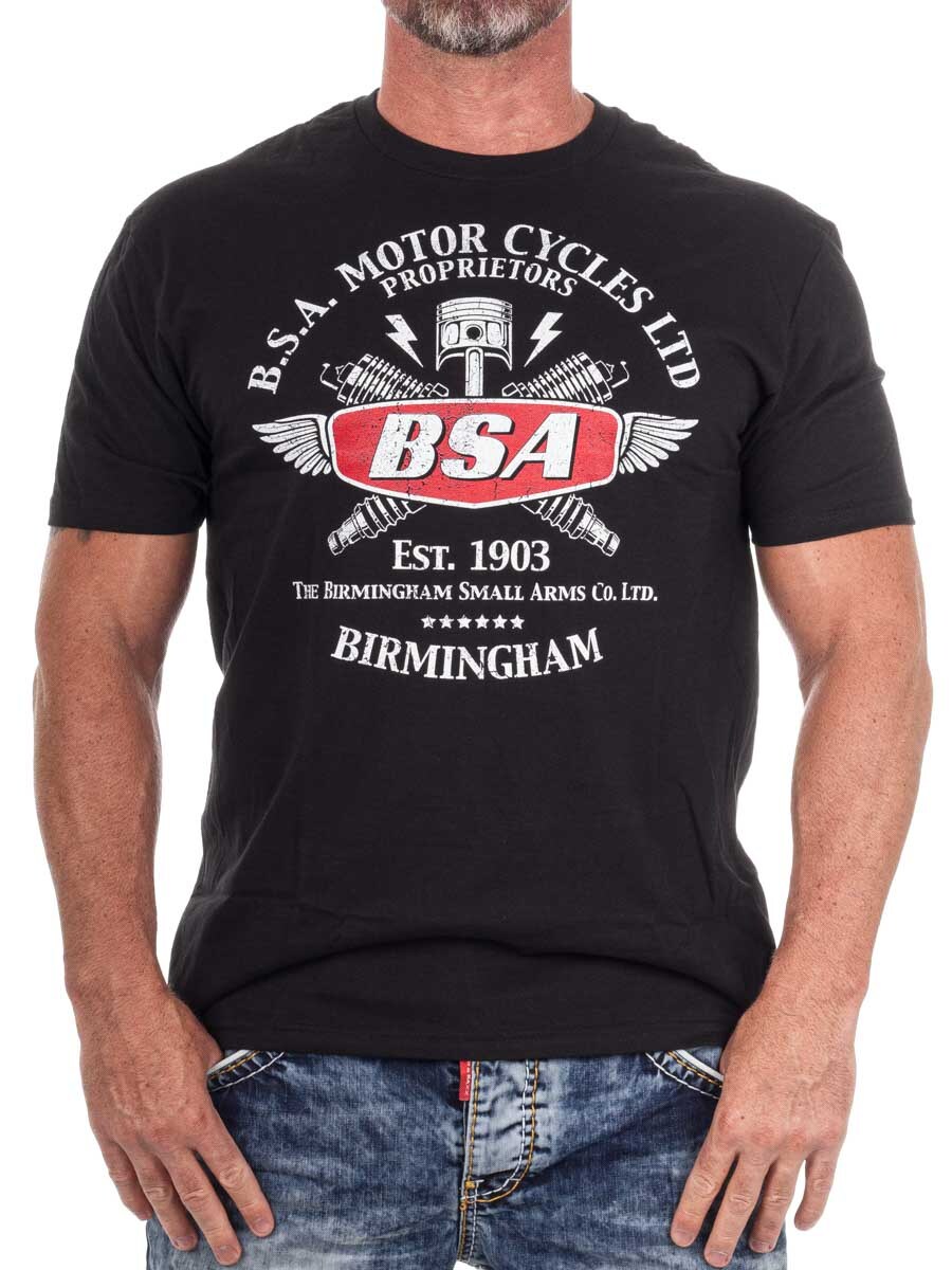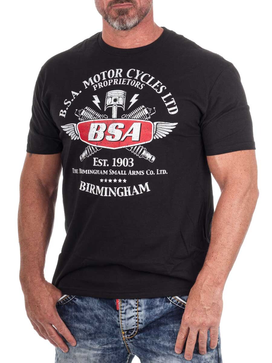 T-shirt with classic motorcycle print from B.S.A. Motor Cycles Ltd, inspired by the legendary British brand Birmingham Small Arms Company. Made from soft cotton for comfort and durability. It has a straight fit and a rounded neckline.