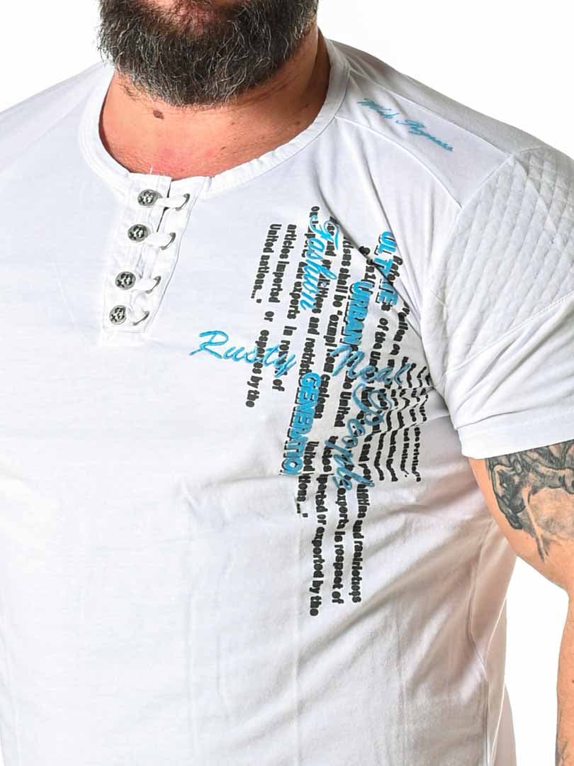 Comfortable T-shirt in soft and slightly stretchy cotton. It features buttons at the neck, text print, contrast fabric on the shoulder and the logo on a metal patch at the bottom hem. Don't miss the fact that it's available in several colours!