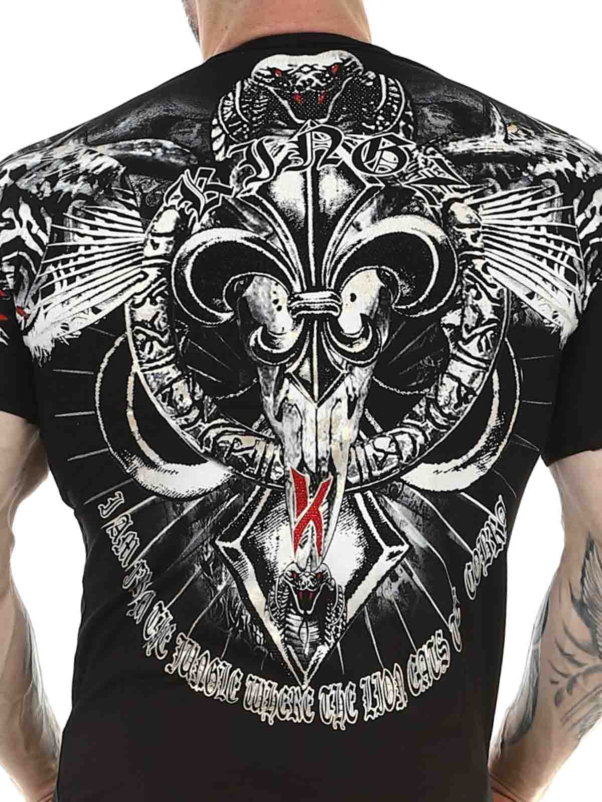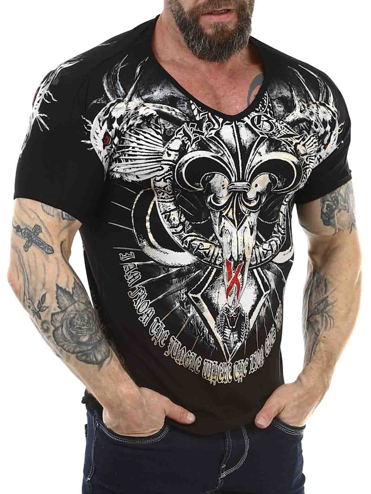 V-neck tee with print and rhinestones. Made of comfortable cotton material with a slim fit. This cool t-shirt is for those who want to stand out from the crowd!