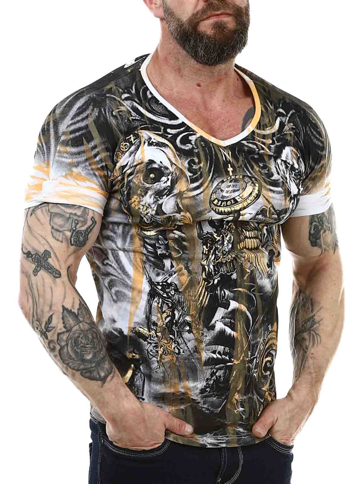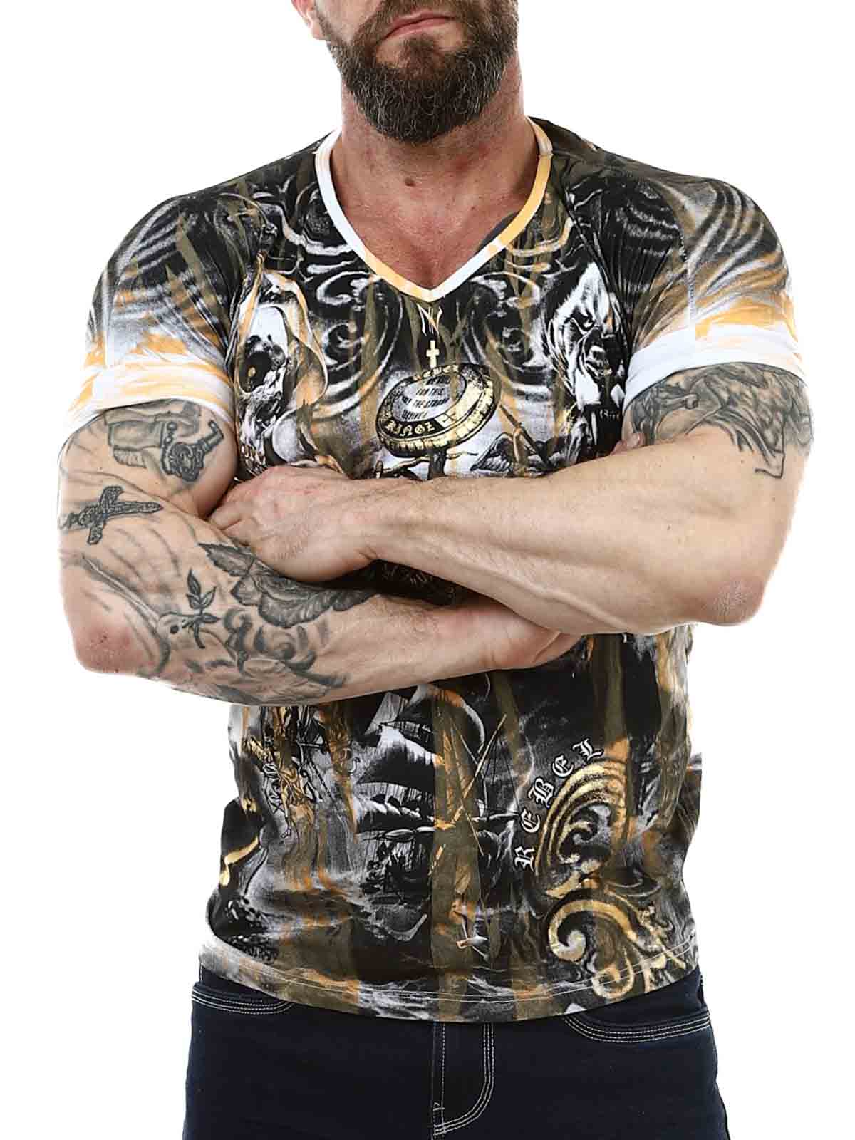 T-shirt with a white base and contrasting print on both the front and back. Slim fit model made from stretchy and comfortable cotton material with a V-neck.