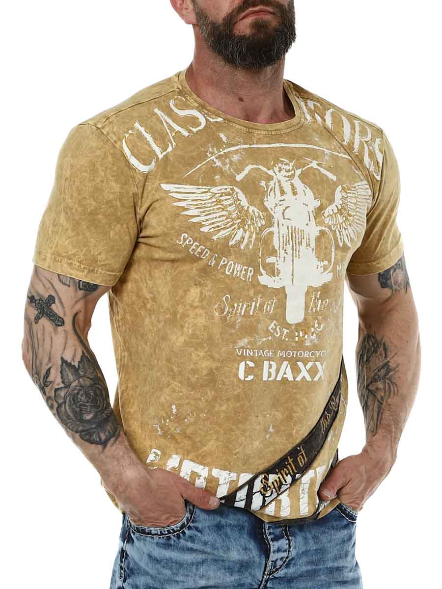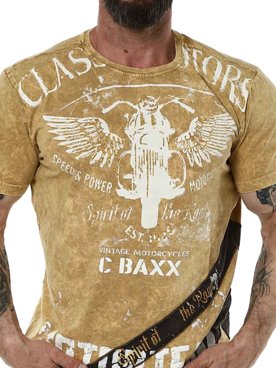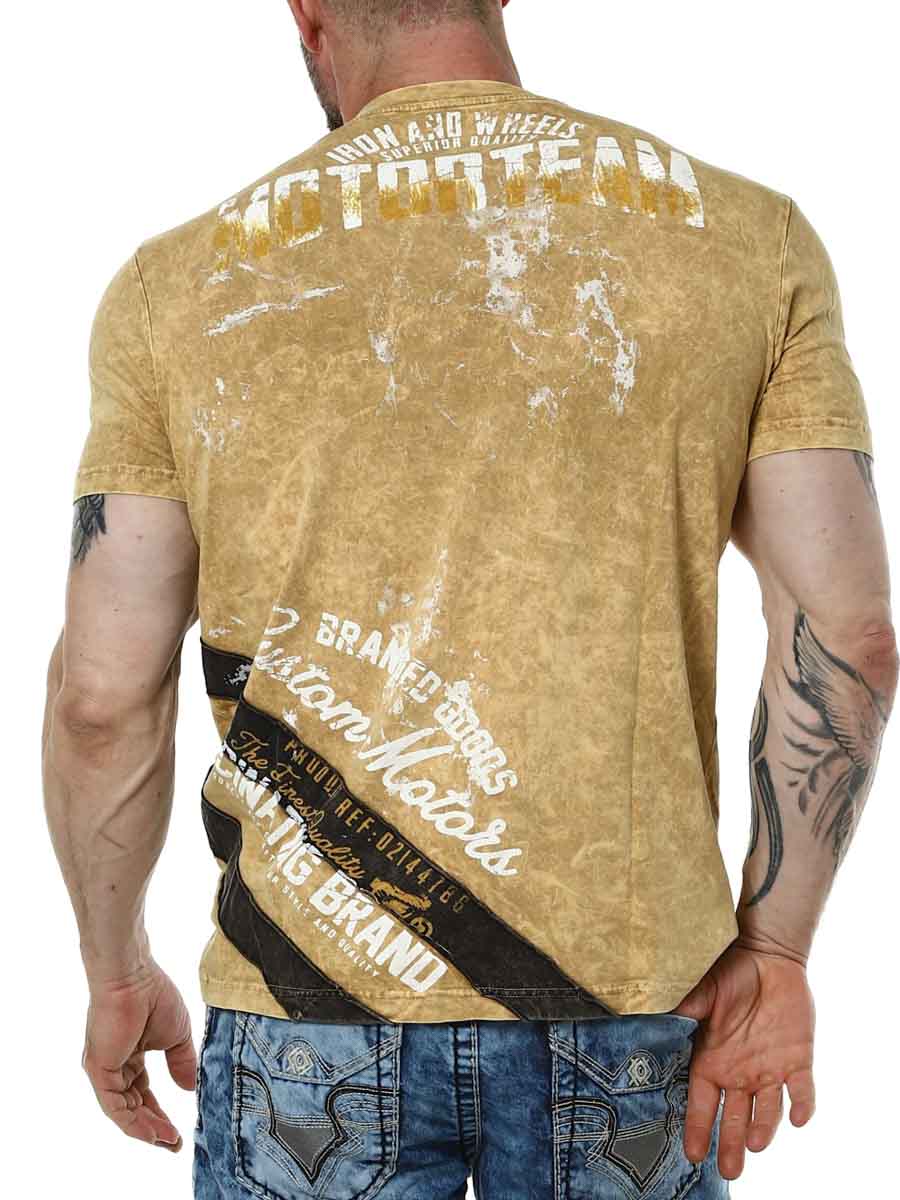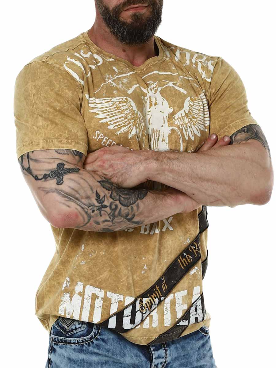 Stylish t-shirt in thin and stretchy material. Tough design with biker prints and stitching. Rounded neckline.