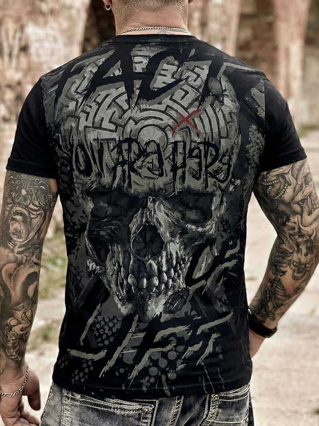 An expressive t-shirt with strong attitude and a large graphic skull motif that extends across both the front and back. A stretchy model with a classic fit and a crew neckline. Perfect for those who want a t-shirt that truly stands out and sets the tone for the entire outfit!